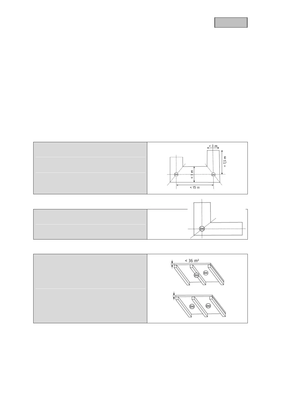 an angle of over 20°, detectors should be installed 0.5 - 1 m away from the highest