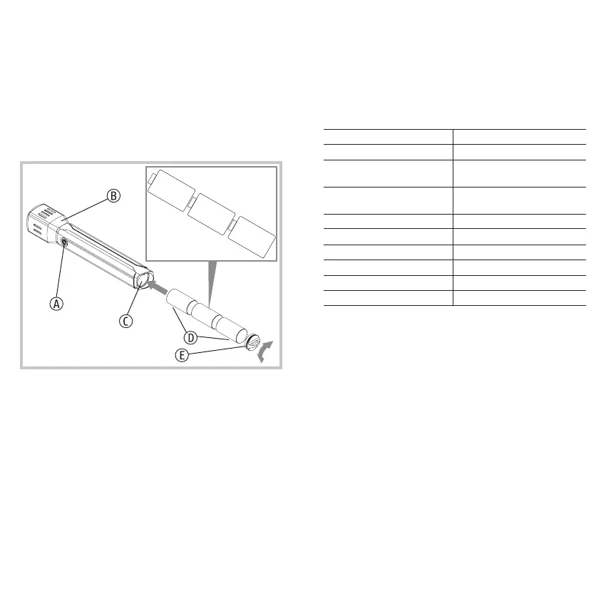 1. Skru løs dekslet (E) på batterirommet (C) og ta det av.