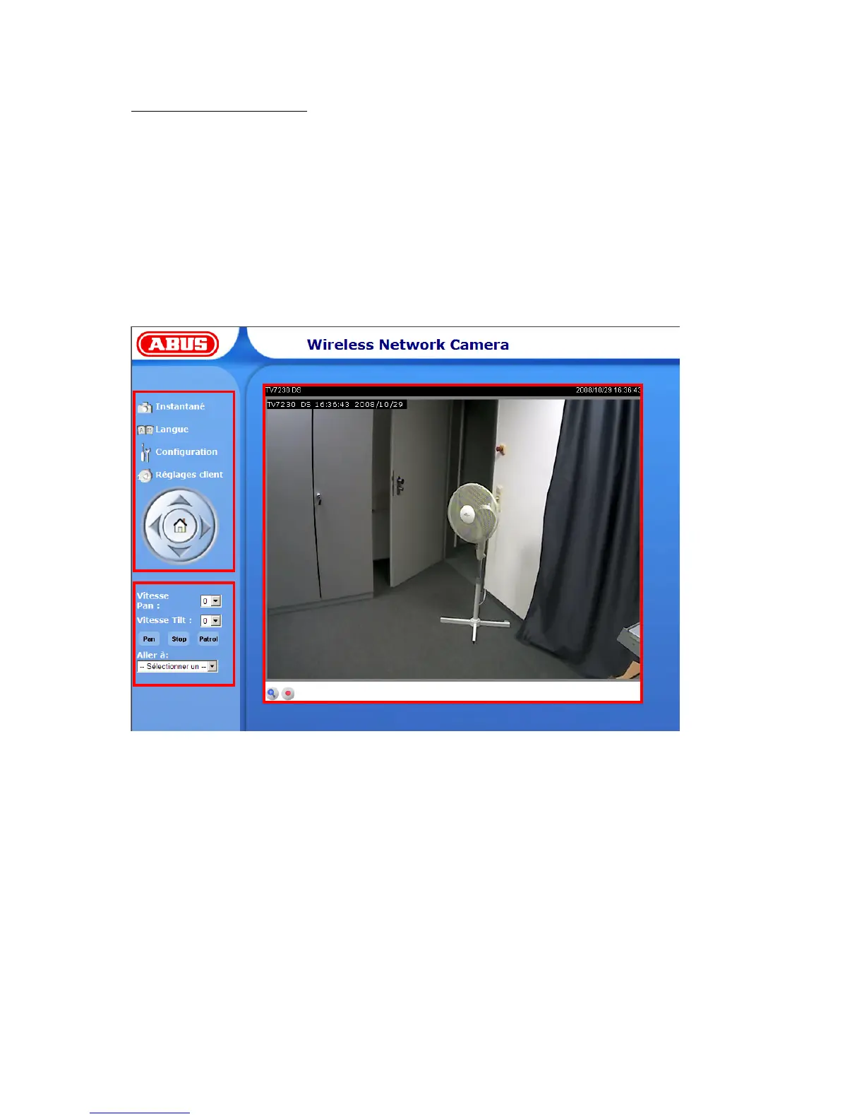 Un clic sur le lien « Configuration » à gauche de la zone d’affichage de l’image permet de passer à