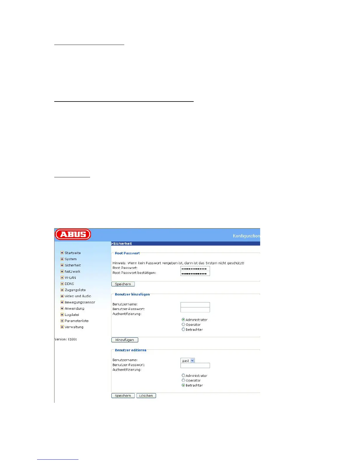 hat jede Person Zugang zur Schwenk/Neige-Netzwerkkamera, einschließlich der Konfiguration,