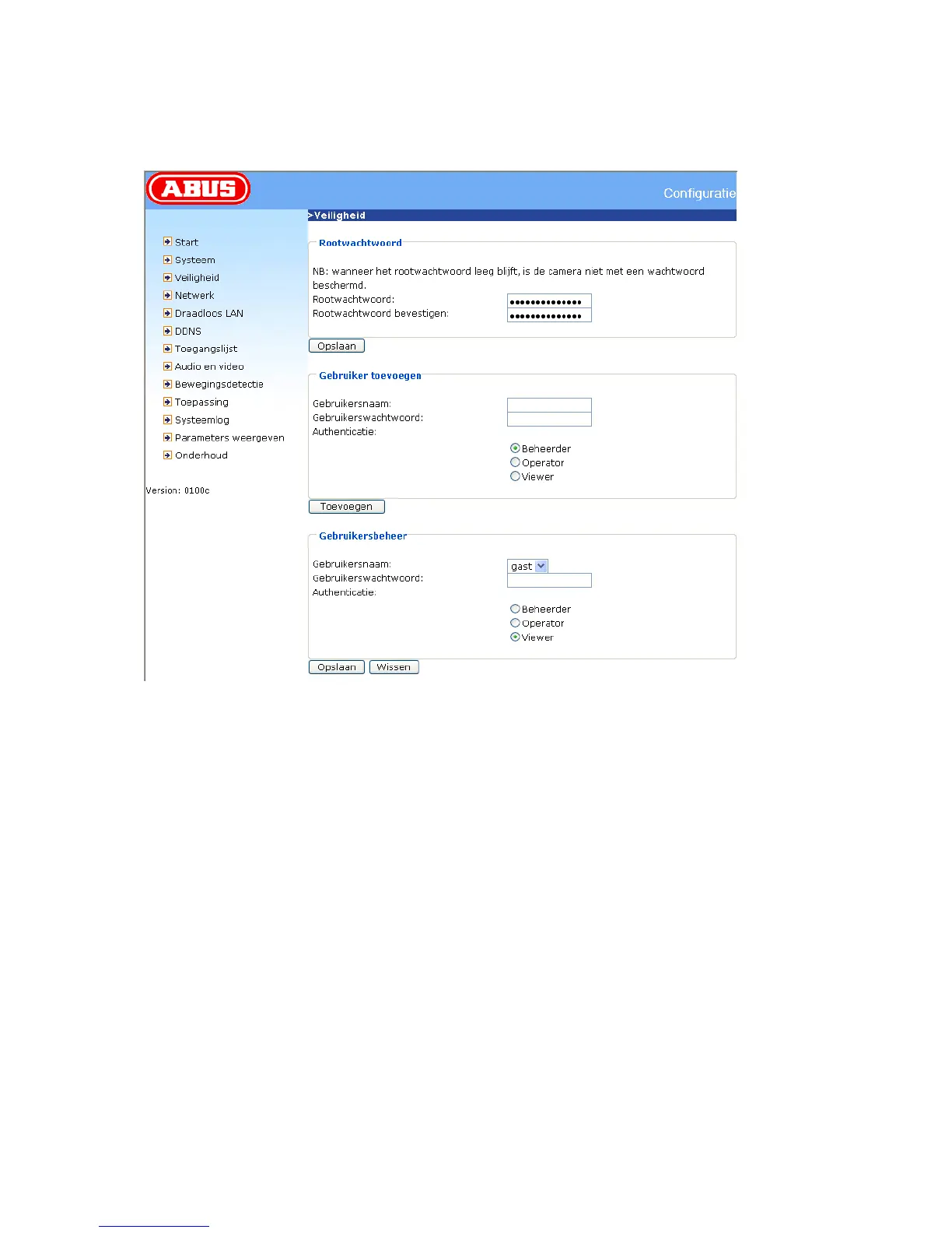 Klik nu op button “Configuration” een daarna op punt “Veiligheid”.