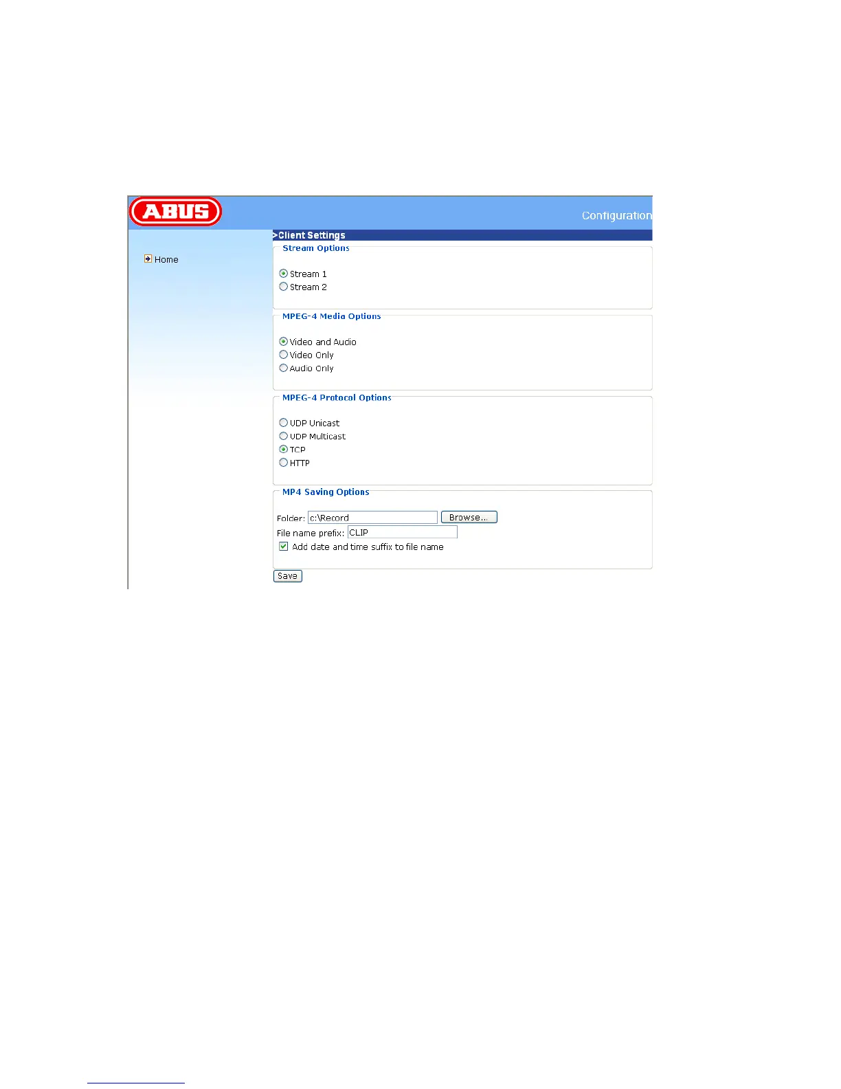camera using the web browser, select the UDP protocol manually, save it and then return to “HOME”