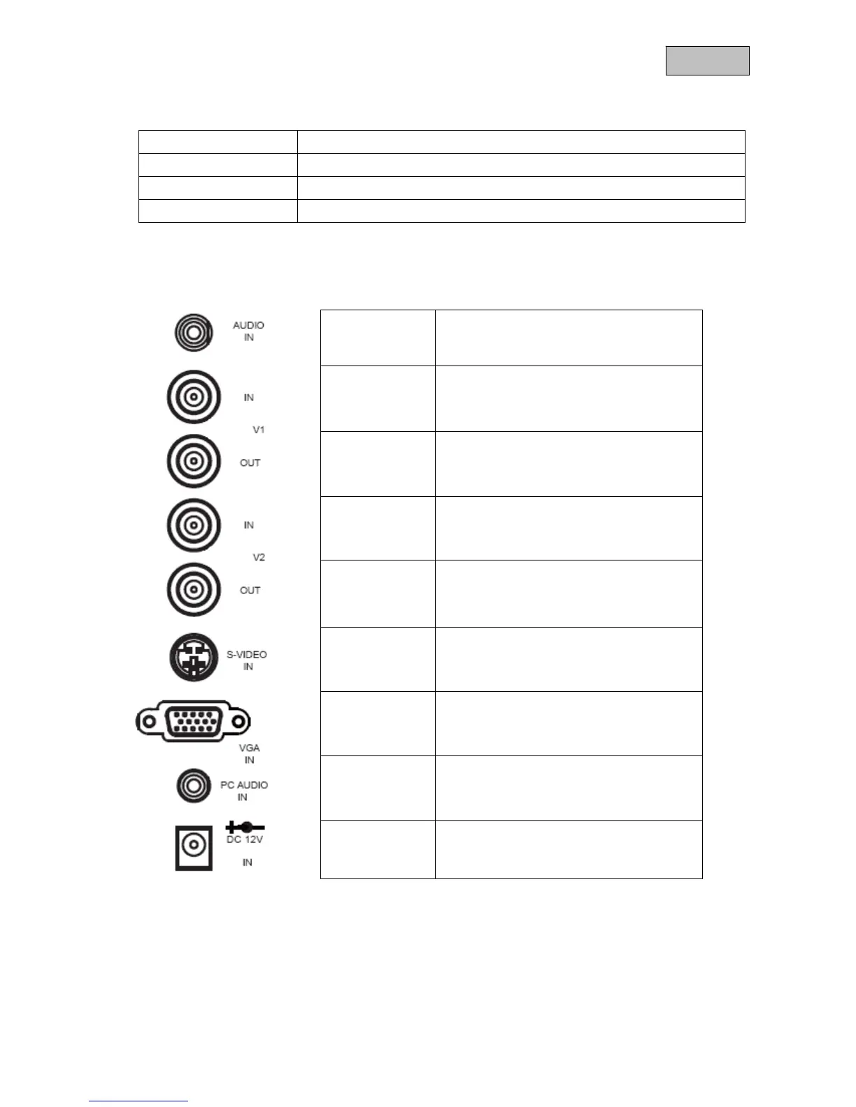 S-VIDEO IN Analogue signal input