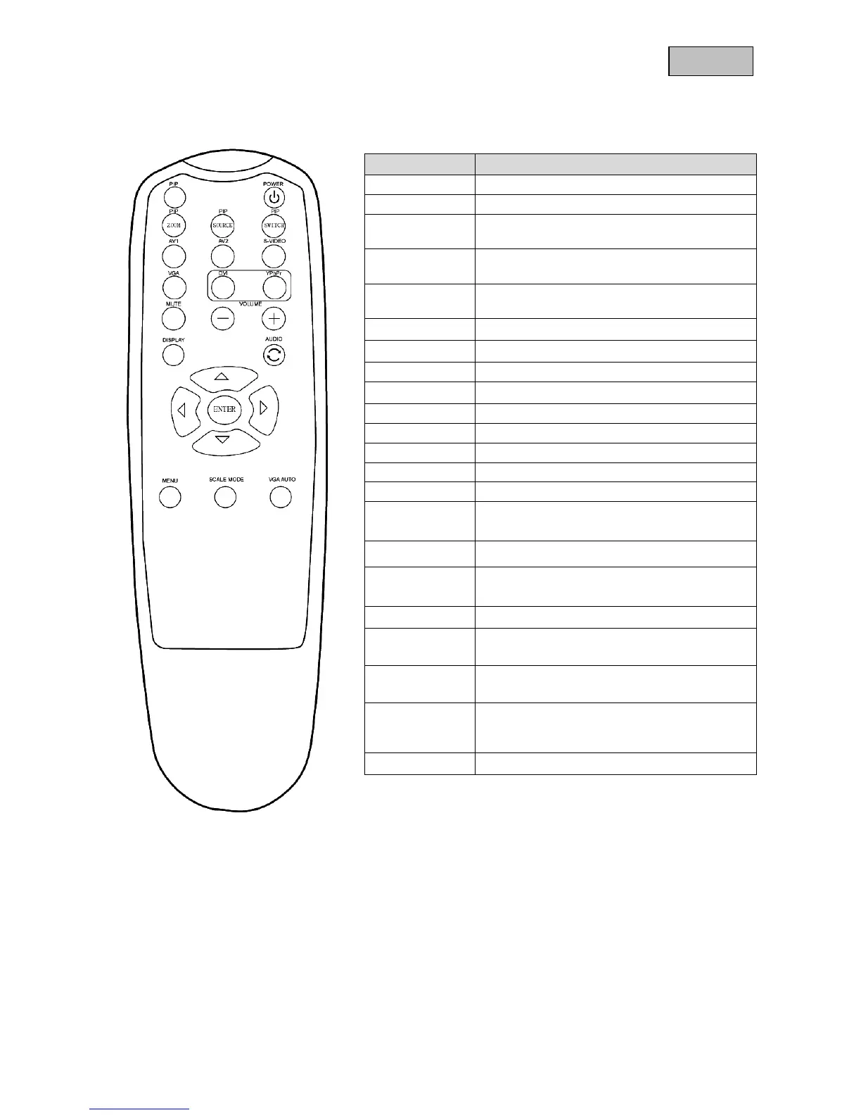 9. Beskrivelse af knapper på fjernkontrolen