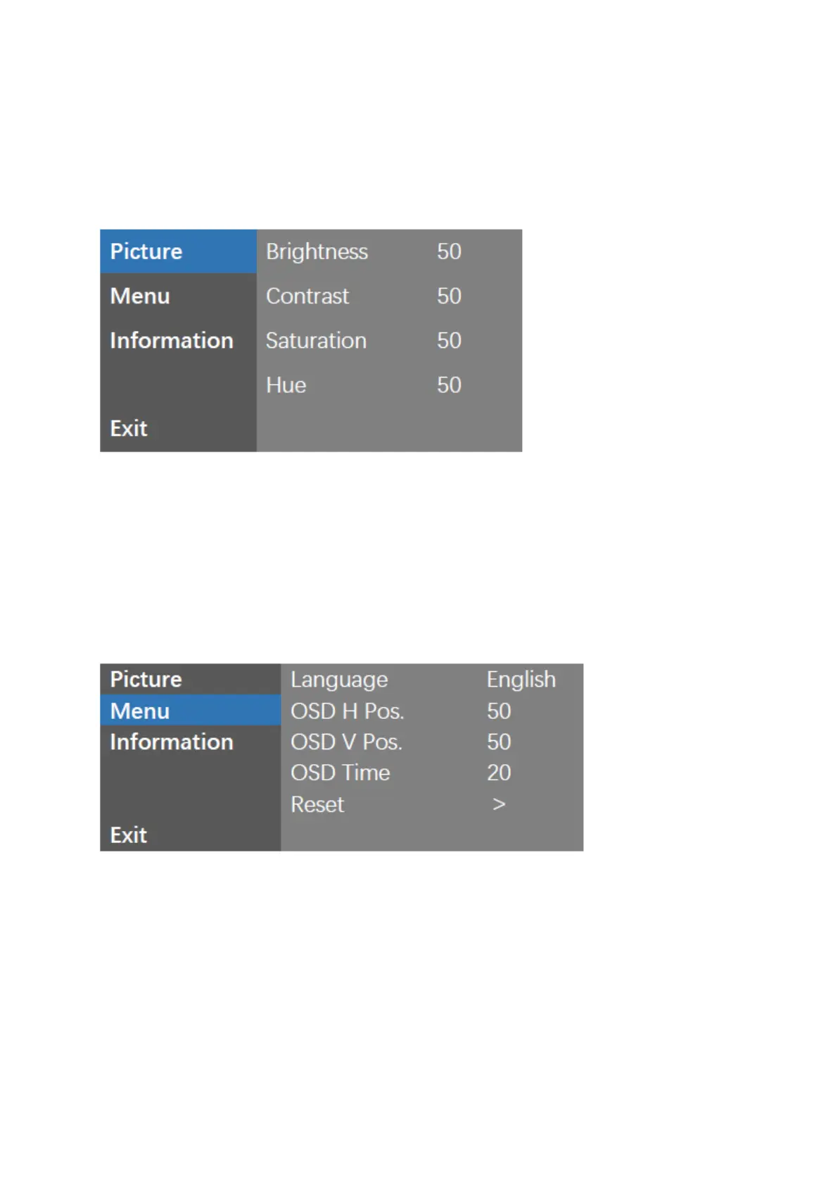 OSD H Pos.: OSD Horizontale Position einstellen (0-100).