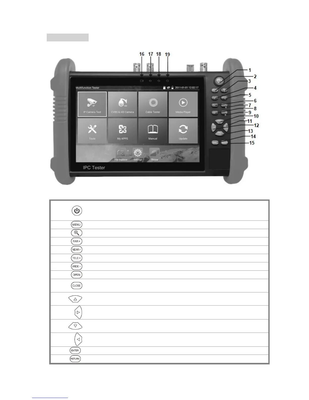 Return/Close: Menü schließen oder eine Ebene zurück gehen.