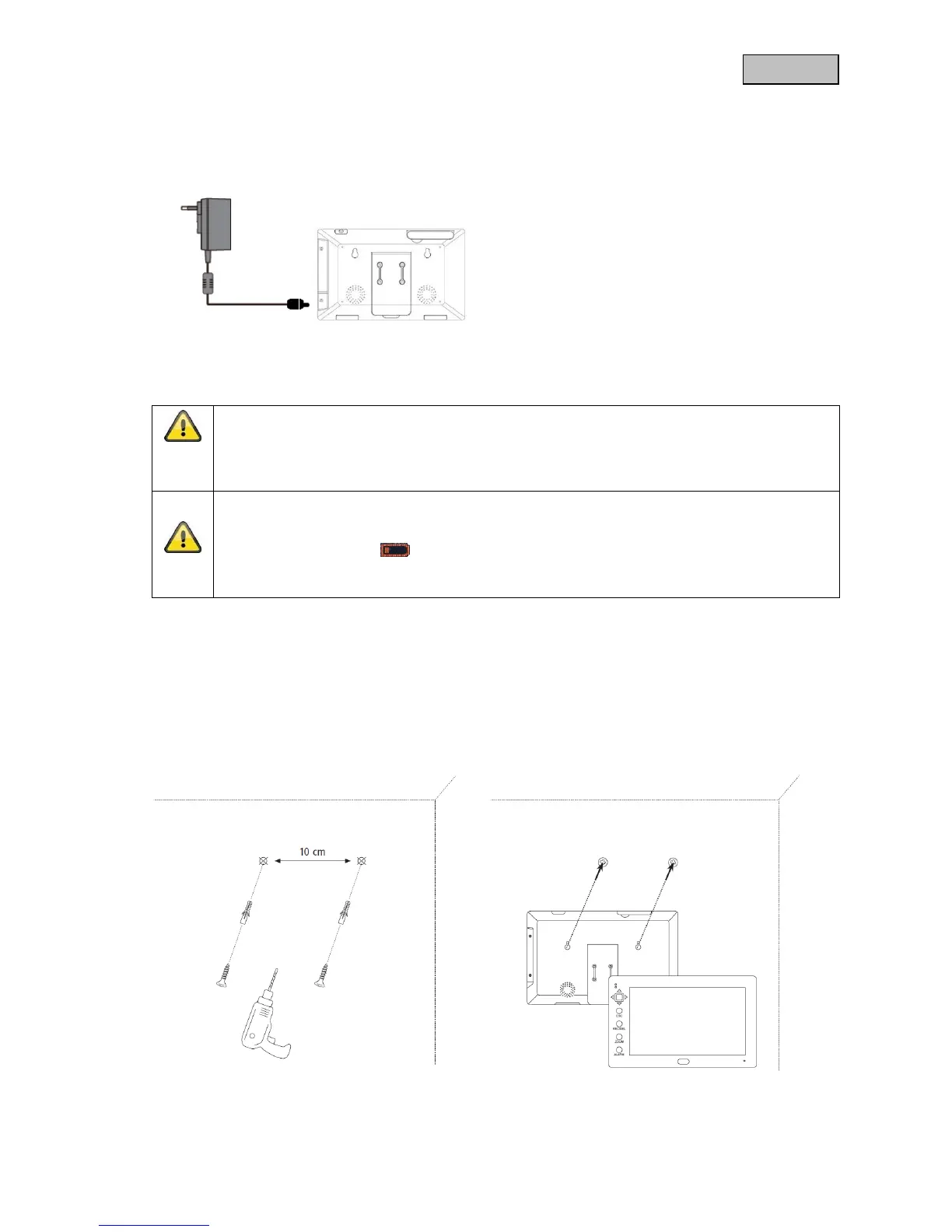 Für eine Wandmontage zeichnen Sie 2 Bohrungslöcher im Abstand von 10cm auf der gewünschten