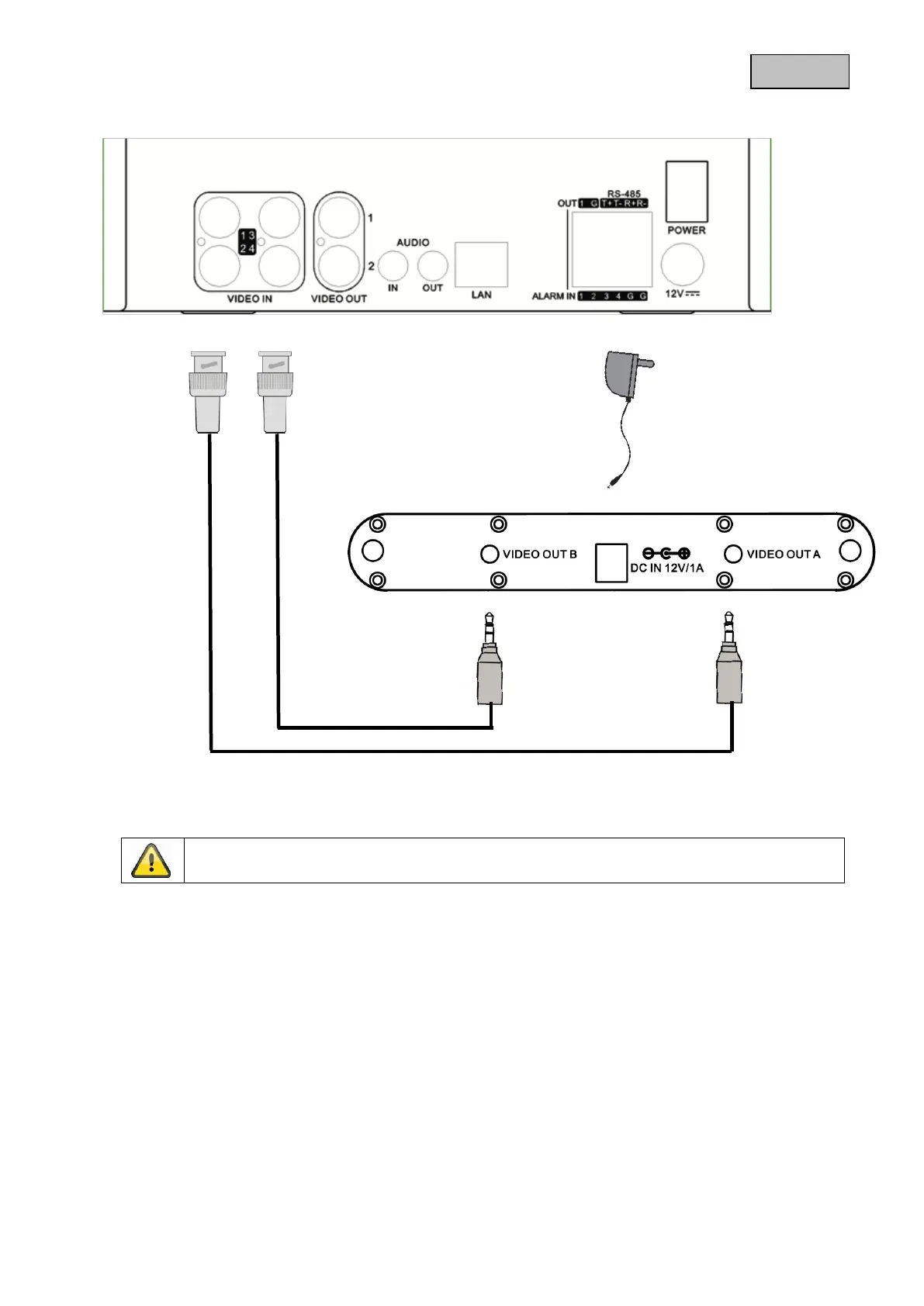 Schließen Sie die beiden Videokabel wie oben aufgezeigt an die gewünschten Eingänge des Rekorders