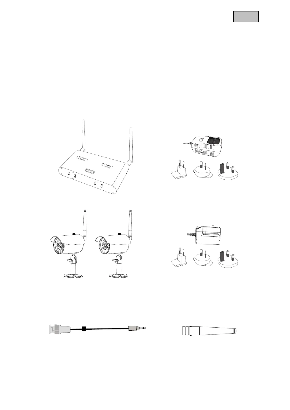 Med denne digitale 2,4 GHz, 2-kanals modtager 2,4 GHz og de 2 trådløse IR-udendørskameraer kan du
