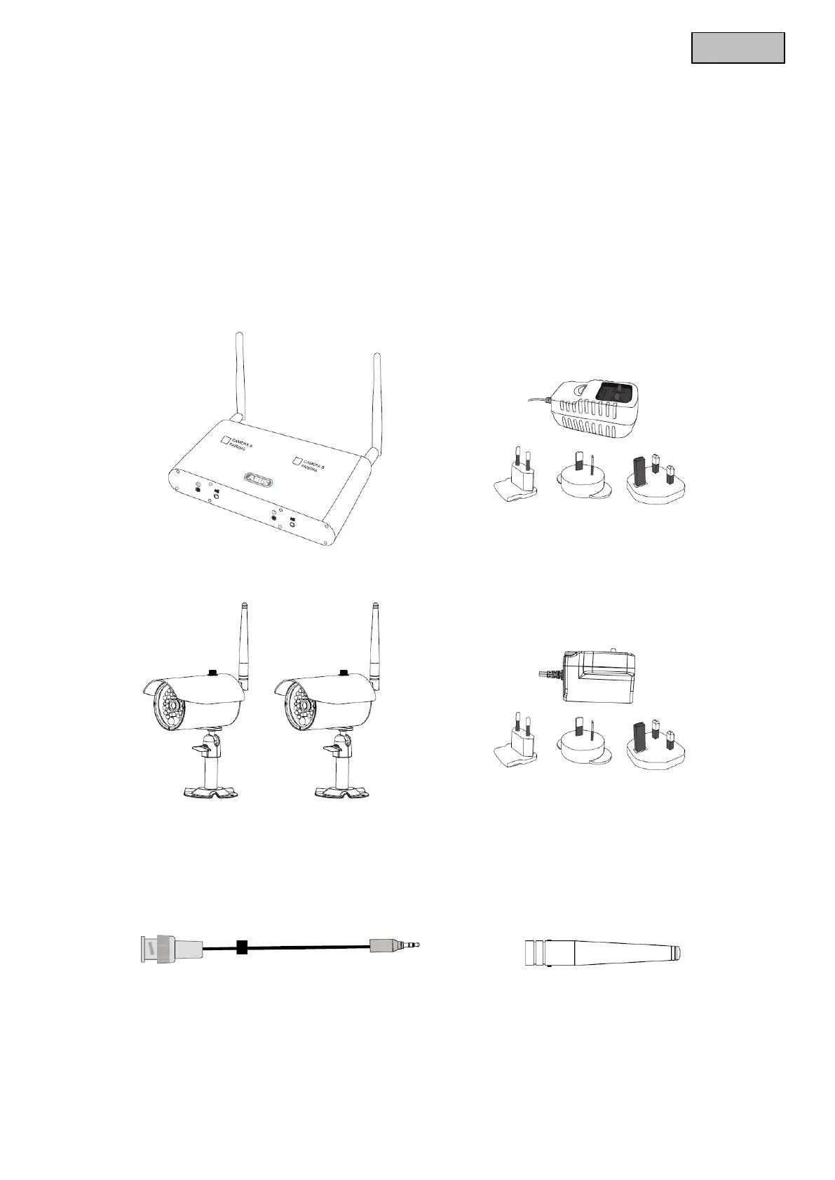 Con este receptor digital de 2 canales y 2,4 GHz y las 2 cámaras inalámbricas IR de exteriores se pueden