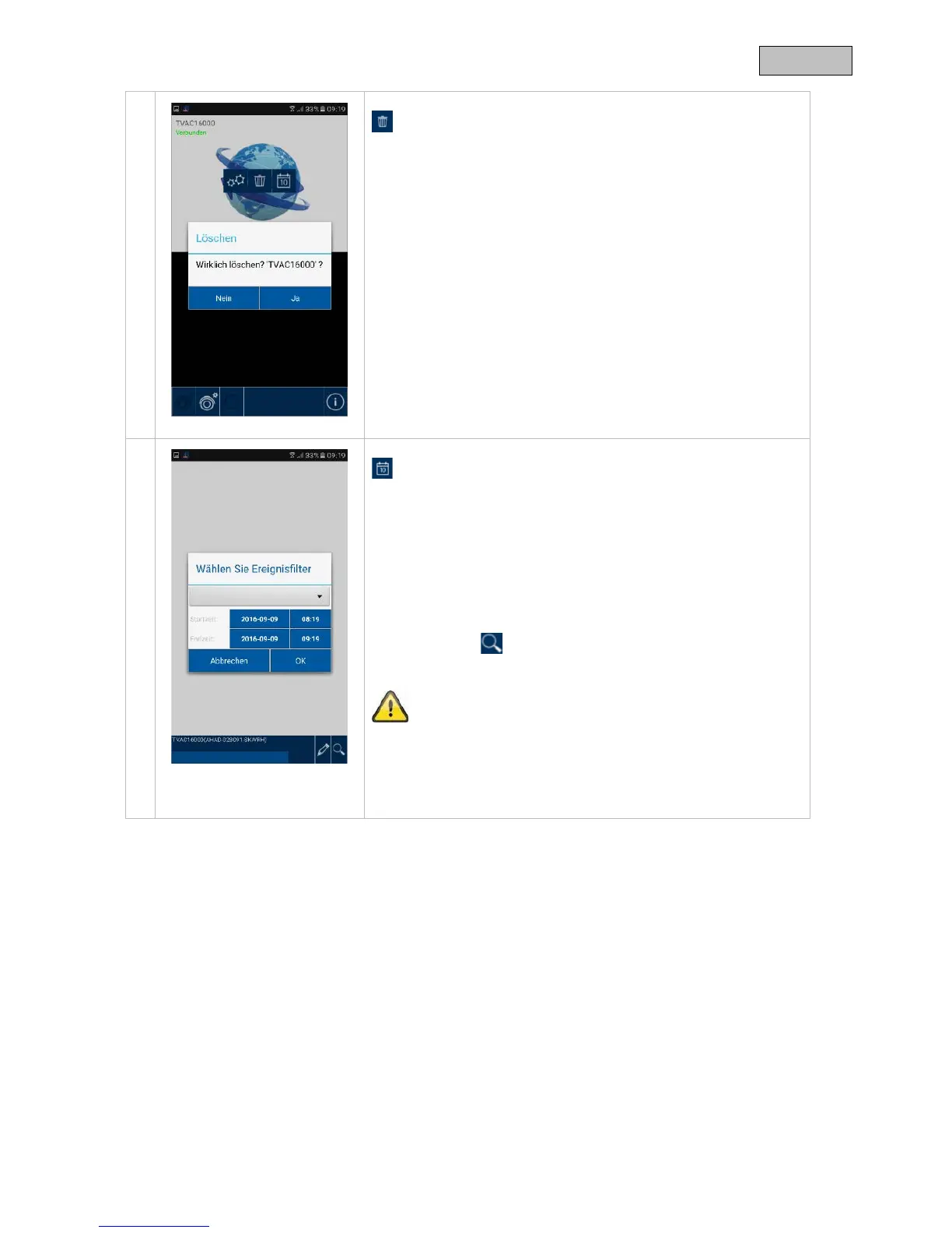 Mit dem Symbol können Sie erneut die Ereignisliste filtern.