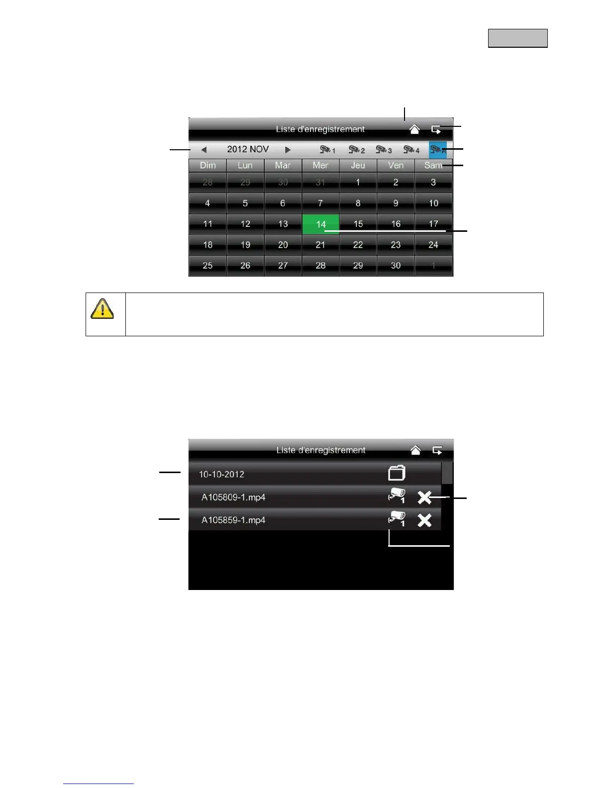 Dès que vous appuyez sur la date sur fond vert, vous accédez à la liste des enregistrements. Les