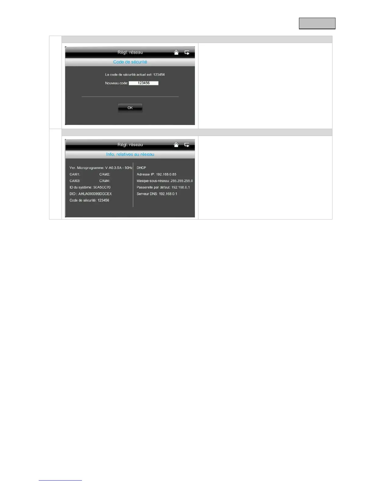 Le code de sécurité par défaut est : 123456