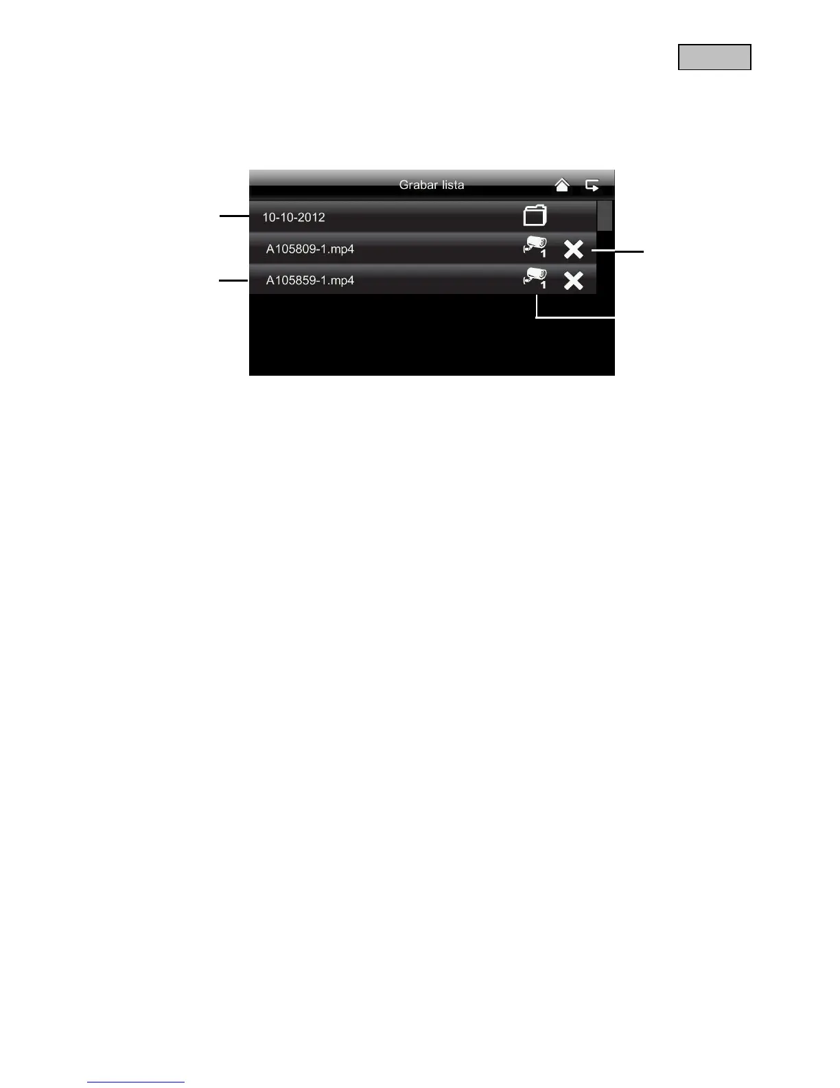 Tocando suavemente la fecha con fondo verde, se accede a la lista de grabaciones. Las grabaciones se