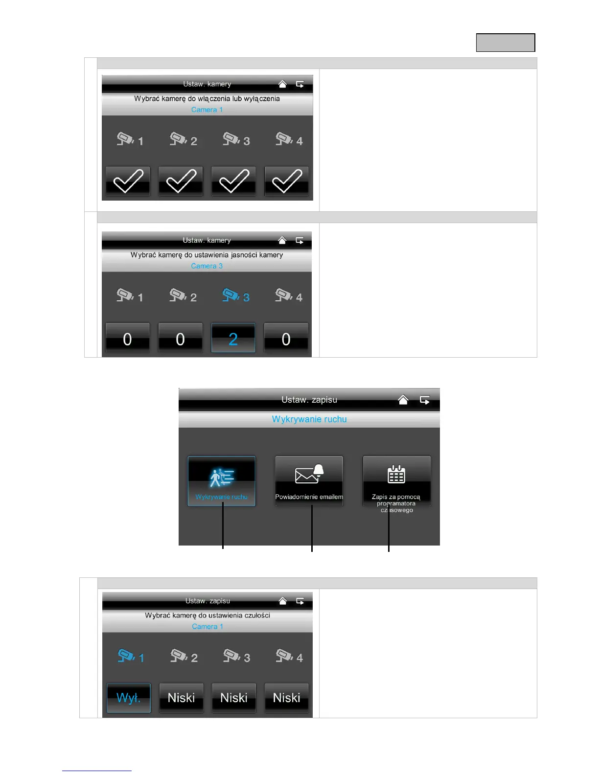 wrażliwości wykrywania ruchu dla każdej z kamer