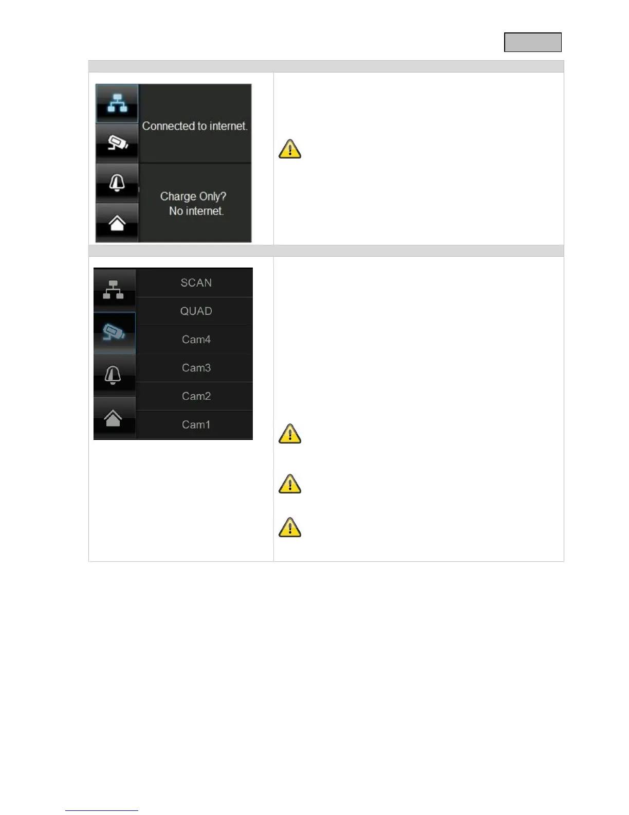 QUAD-modus. Her kan du se maks. fire kameraer samtidigt.
