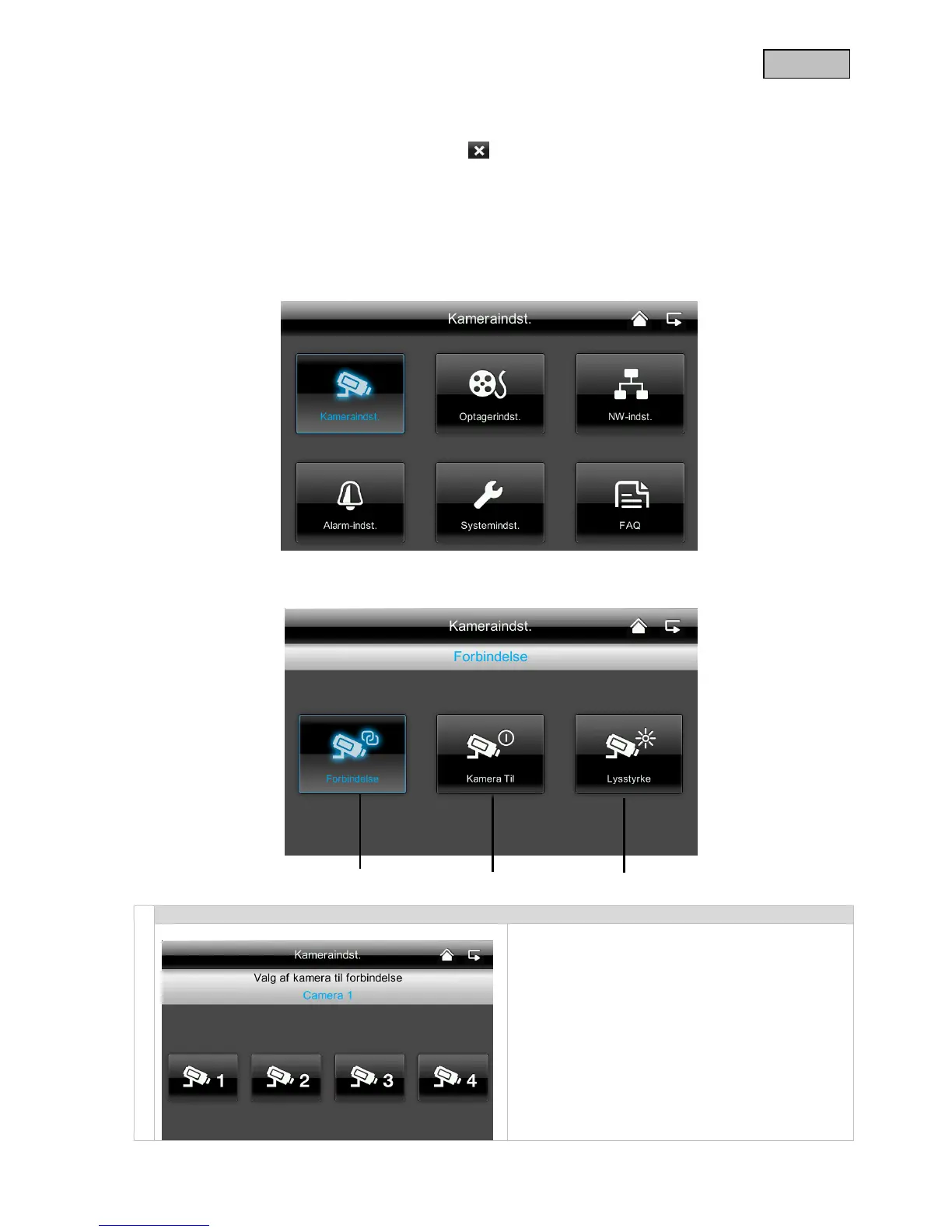 3. Vælg det ønskede kamera (1-4). Systemet