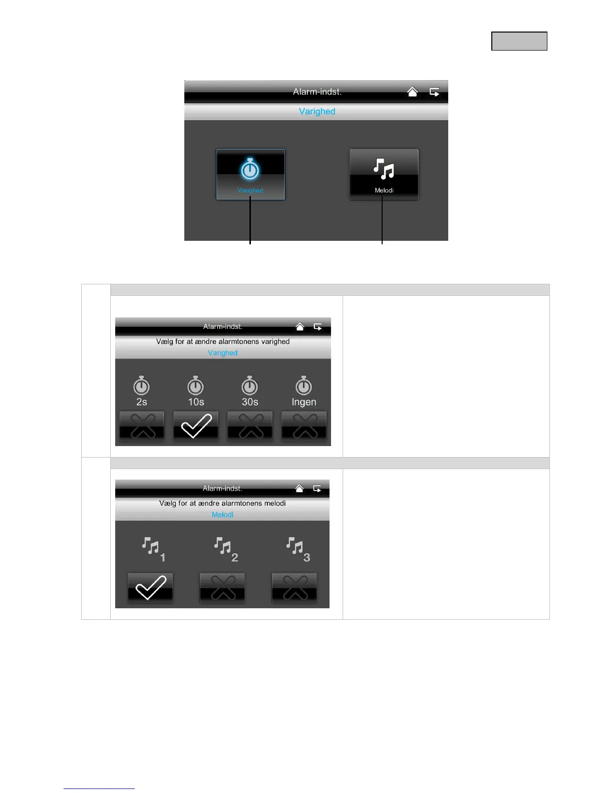 Alarmeringsvarigheden kan du indstille