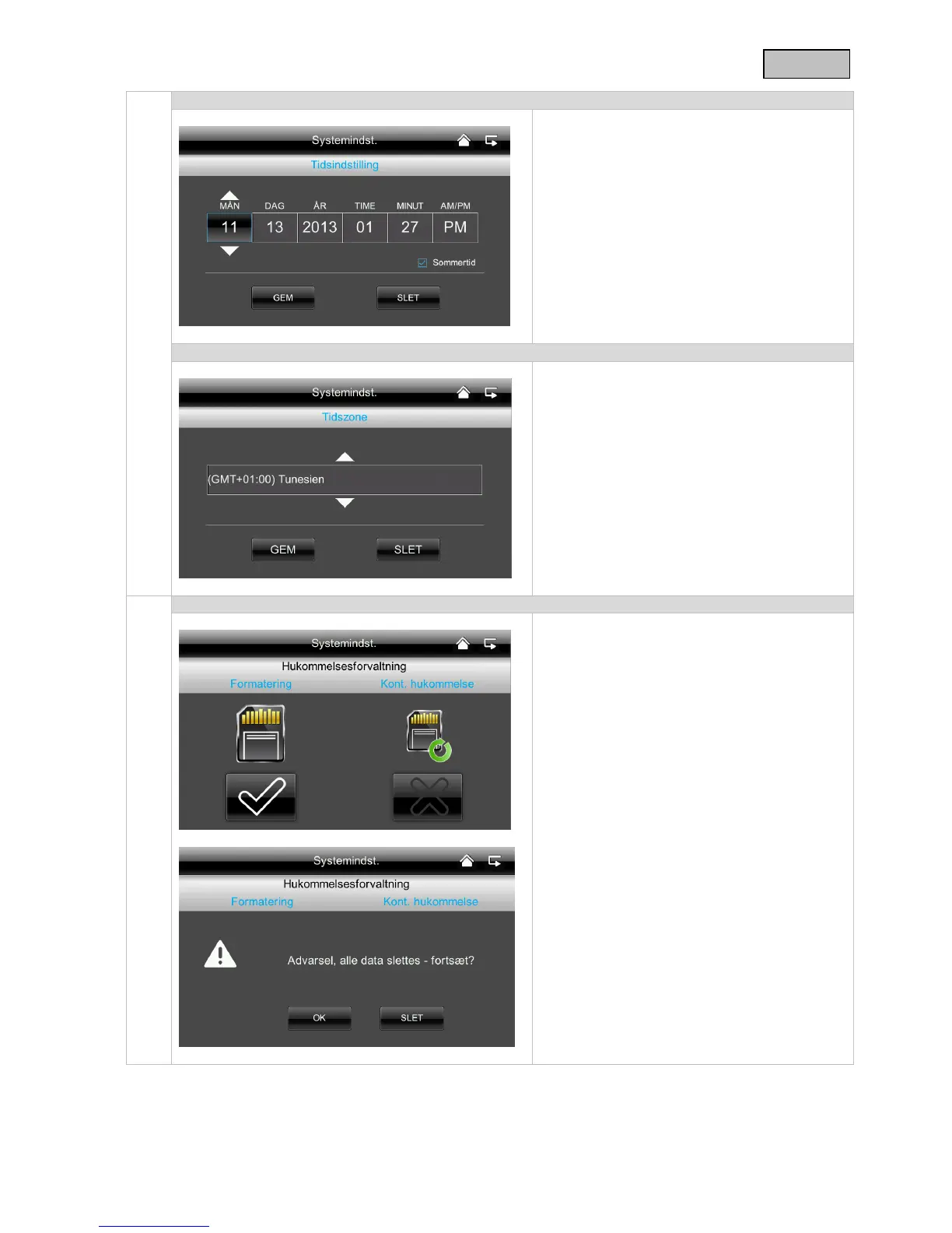 Indstilling af tid // dato og klokkeslæt