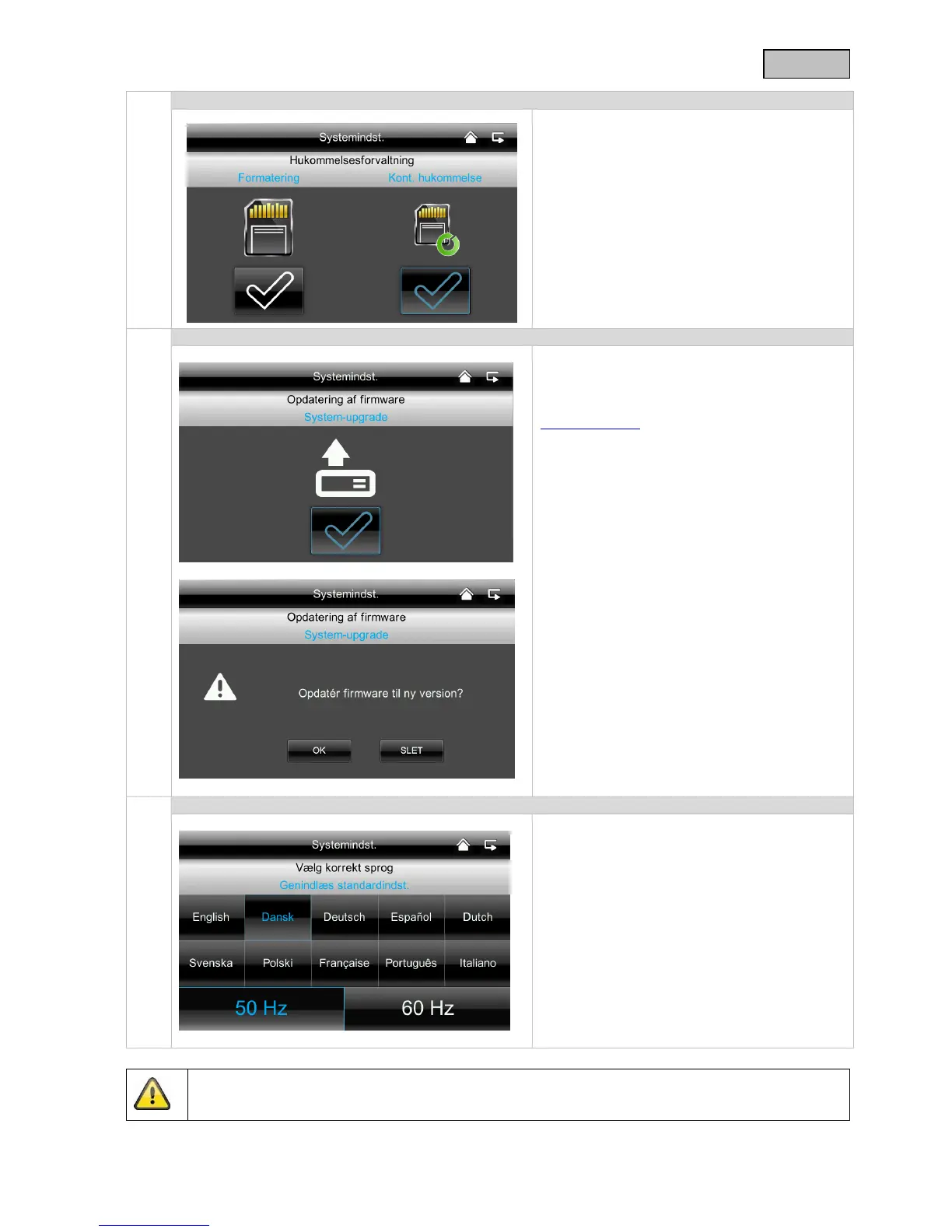 Genoprettelse af fabriksindstillinger/sprog/valg af Hz