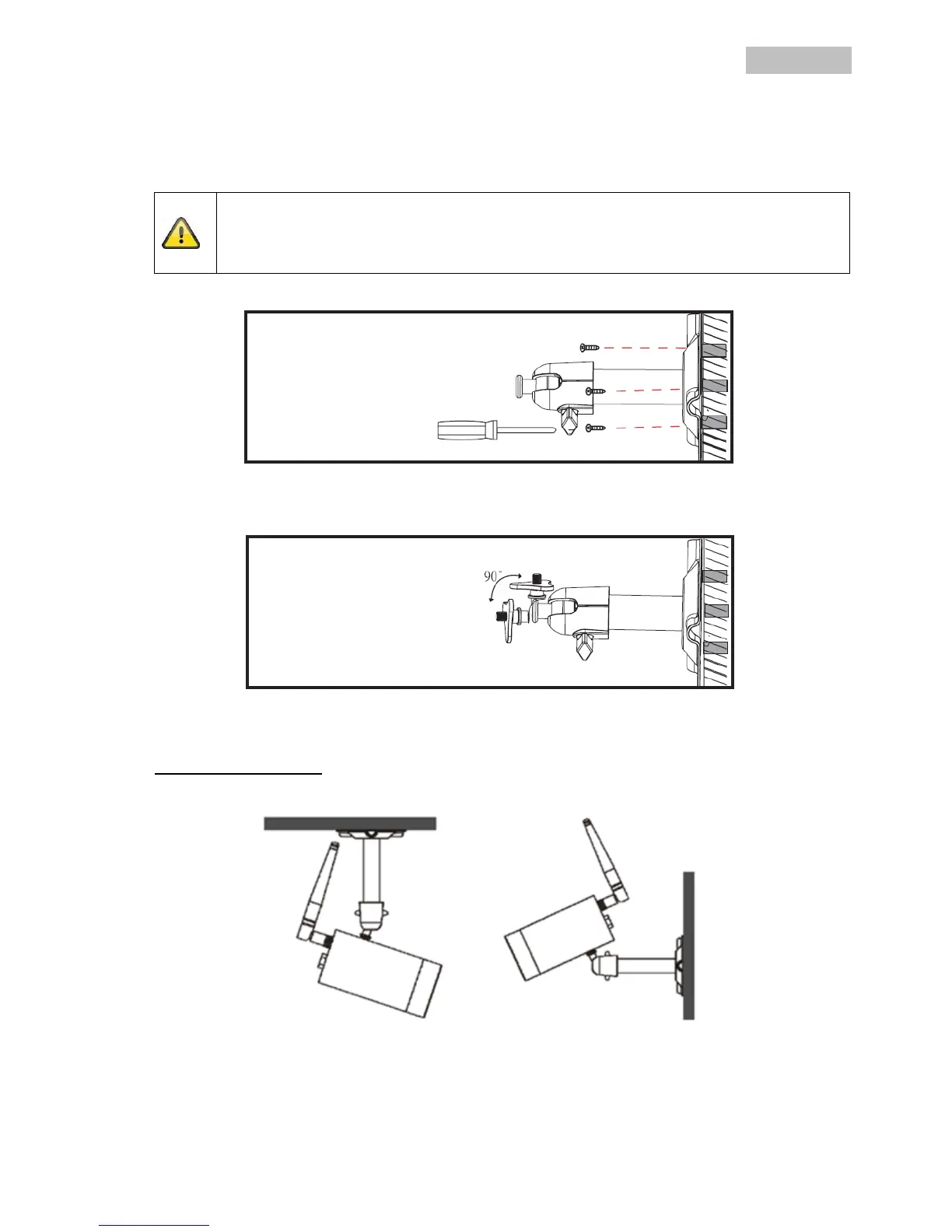 Schroef daarna de camera op de houder en verbind de voeding met de camera.