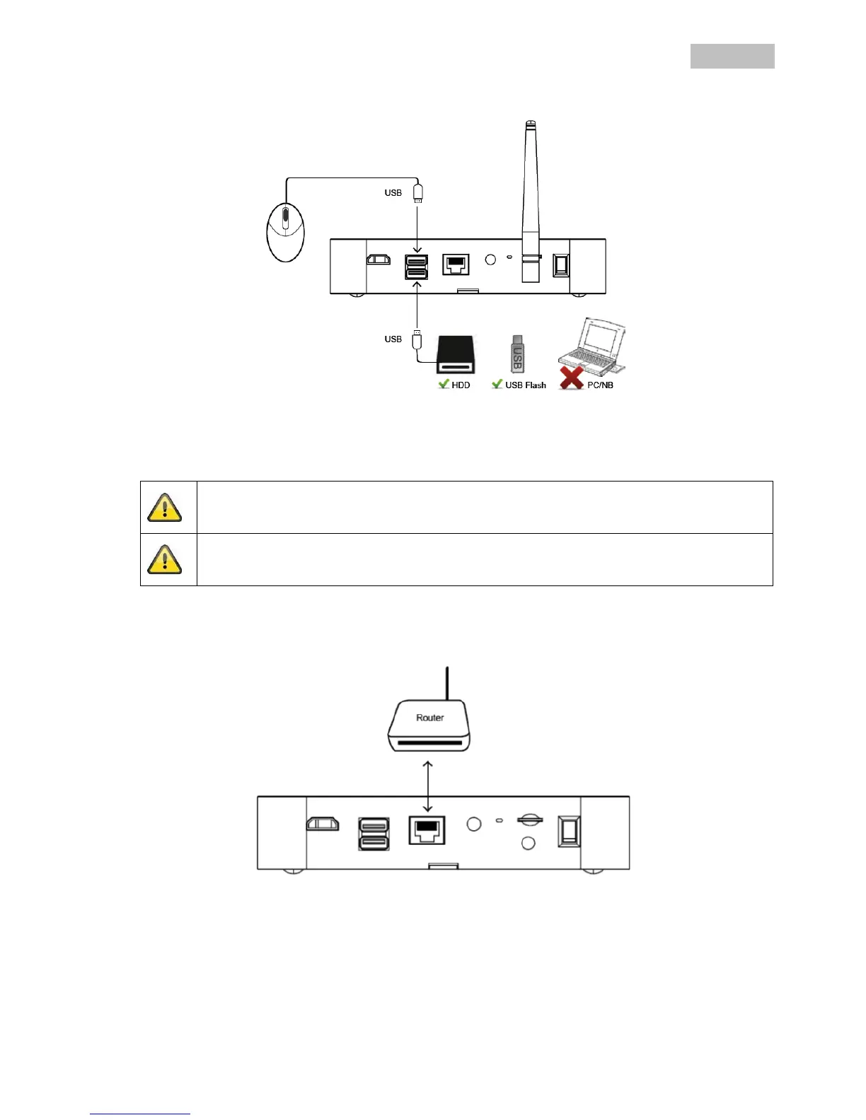 2. Then connect an external hard disk drive to the second USB port. Please format this before initial