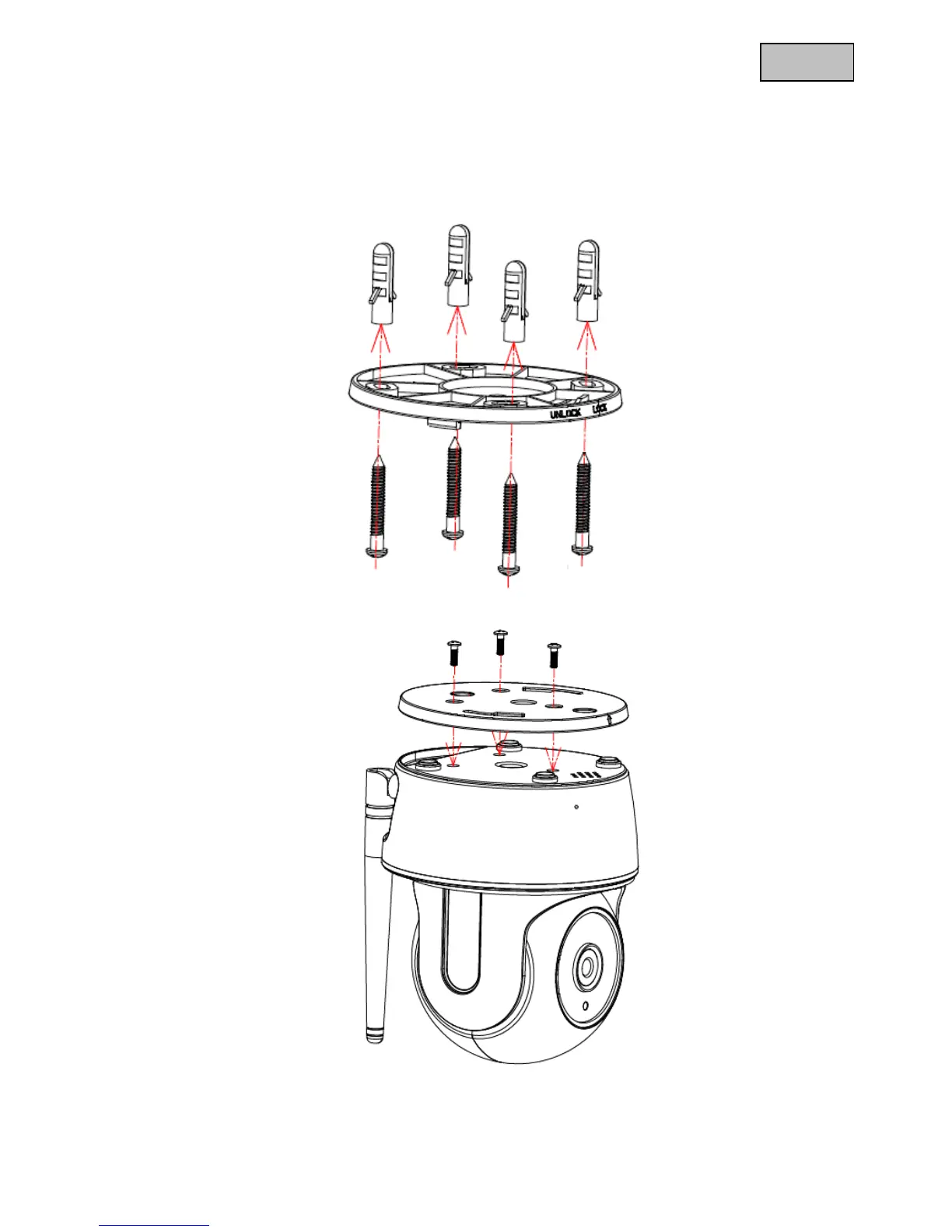 2. Avvitare la piastra di base della telecamera, utilizzando le viti in dotazione.