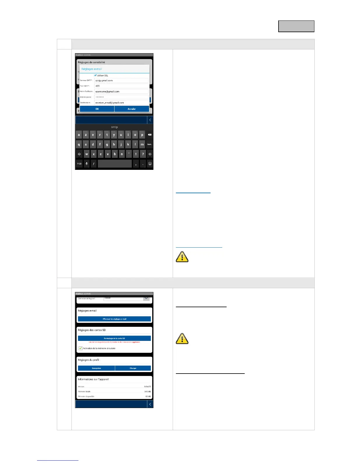 Les réglages d’e-mail sont nécessaires pour qu'une