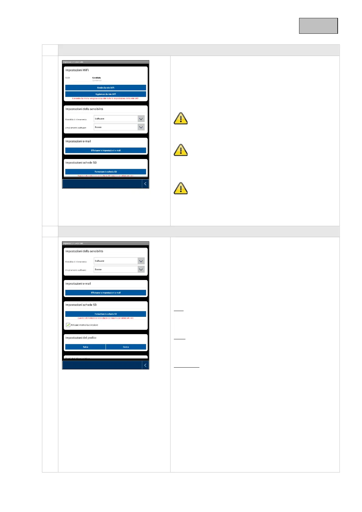 Qui è possibile stabilire le diverse sensibilità di rilevamento