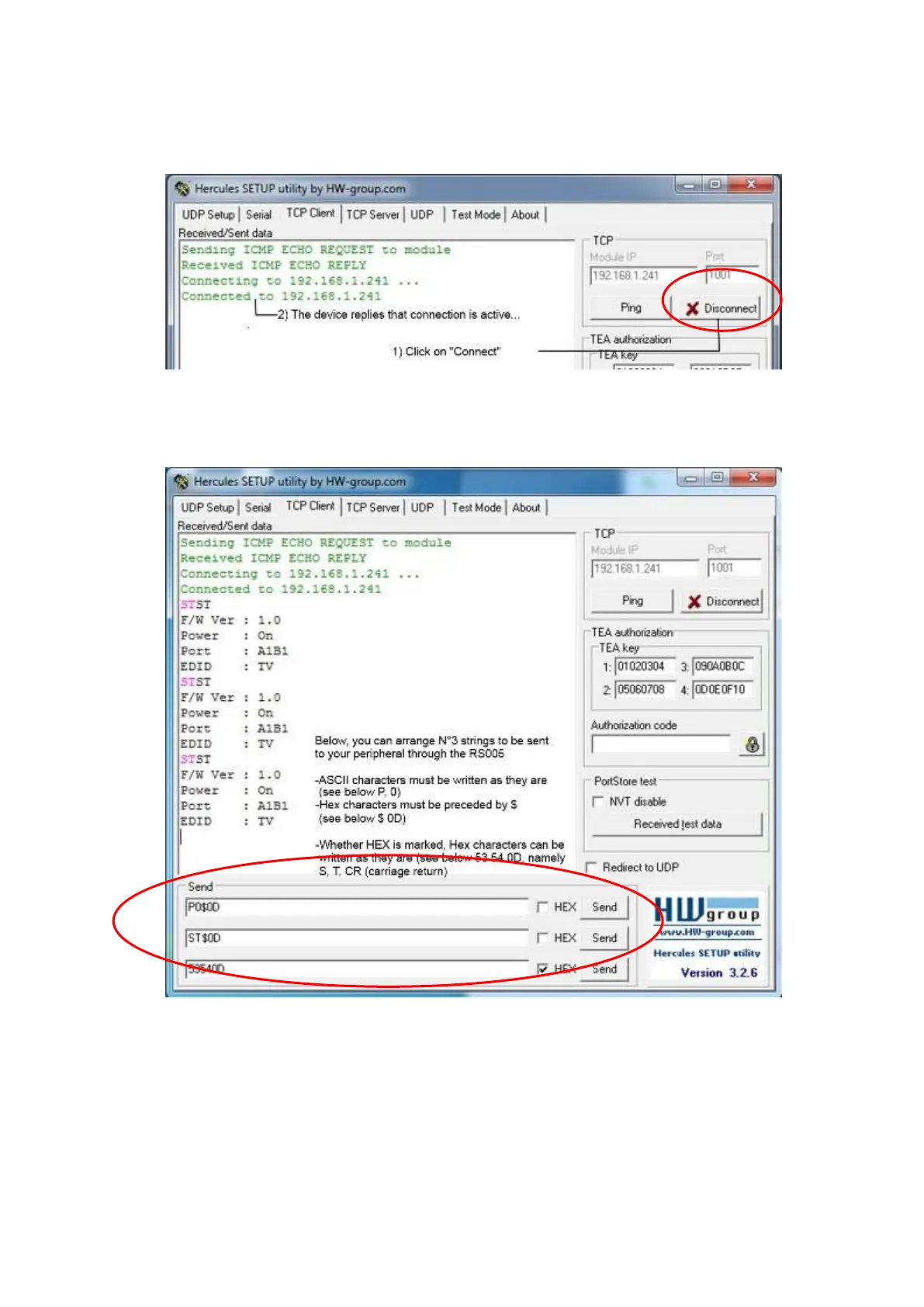 Zeichenkette kann einfach durch Klicken der Tasten “Send” gesendet werden.