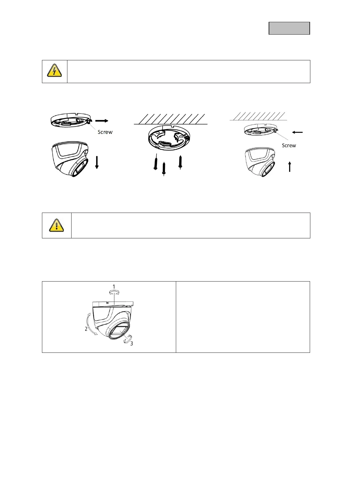 la plaque de butée. Pour fixer le socle de la caméra, utilisez les vis et chevilles fournies.