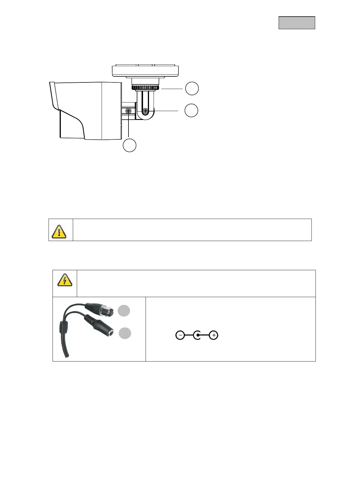Kamery są przystosowane do 12 V DC. Podłączając zasilanie, zwróć uwagę na biegunowość. Do