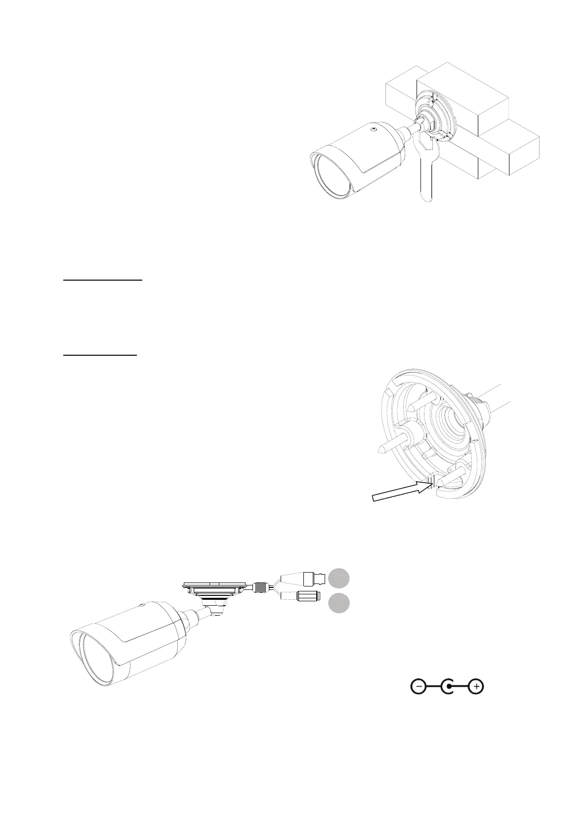 Les caméras disposent d’une alimentation de tension 12VDC. Respectez la polarité lors du