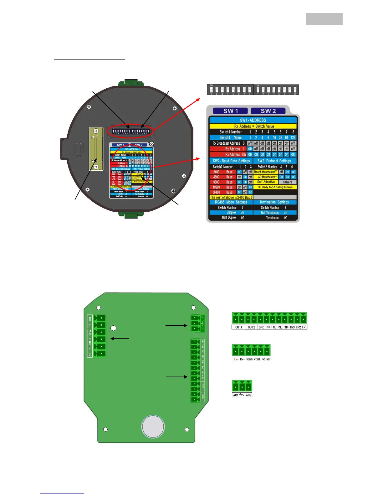 1. Adresse DIP Schalter 2. Protokoll DIP Schalter