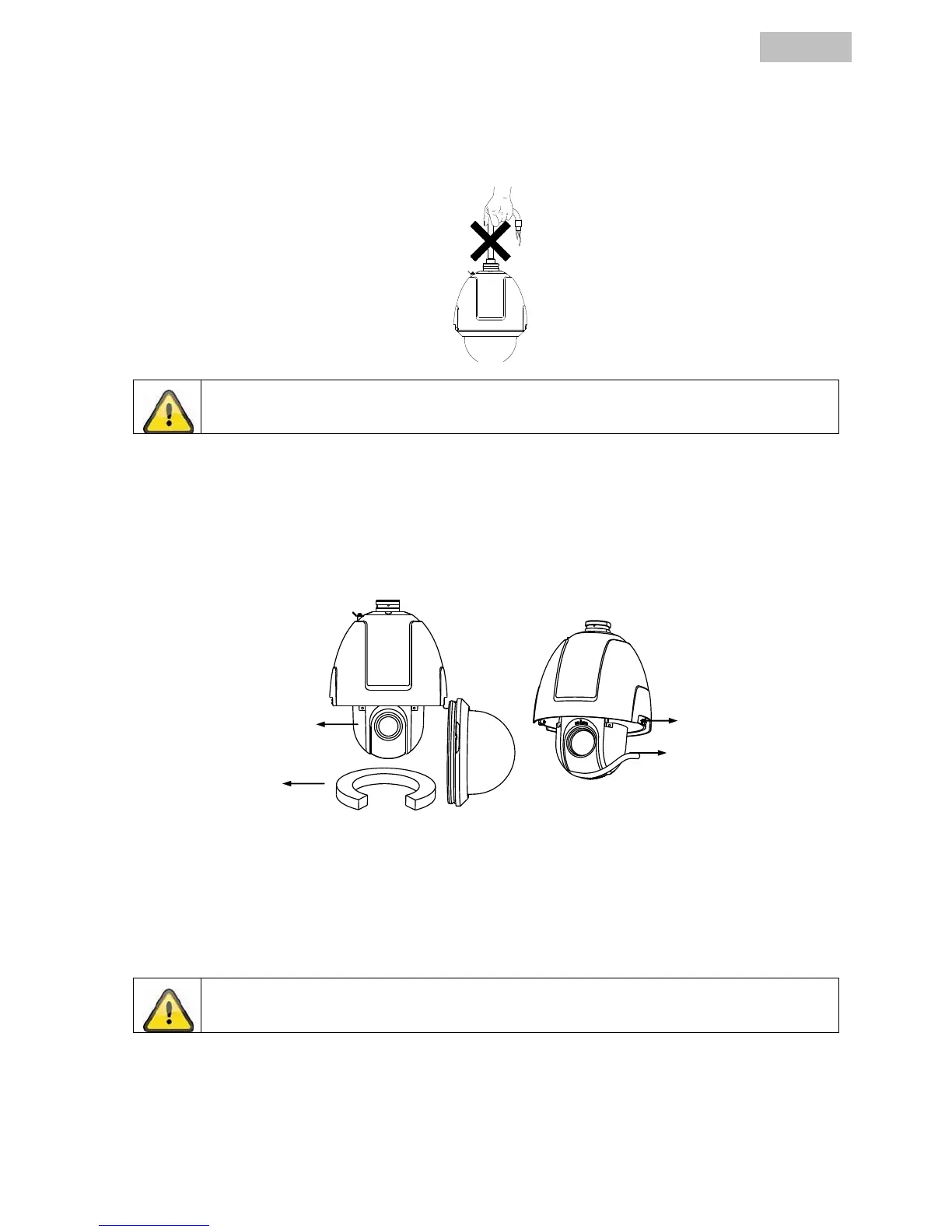 Halten Sie niemals den Speed Dome am wasserdichten Kabel fest, da ansonsten die