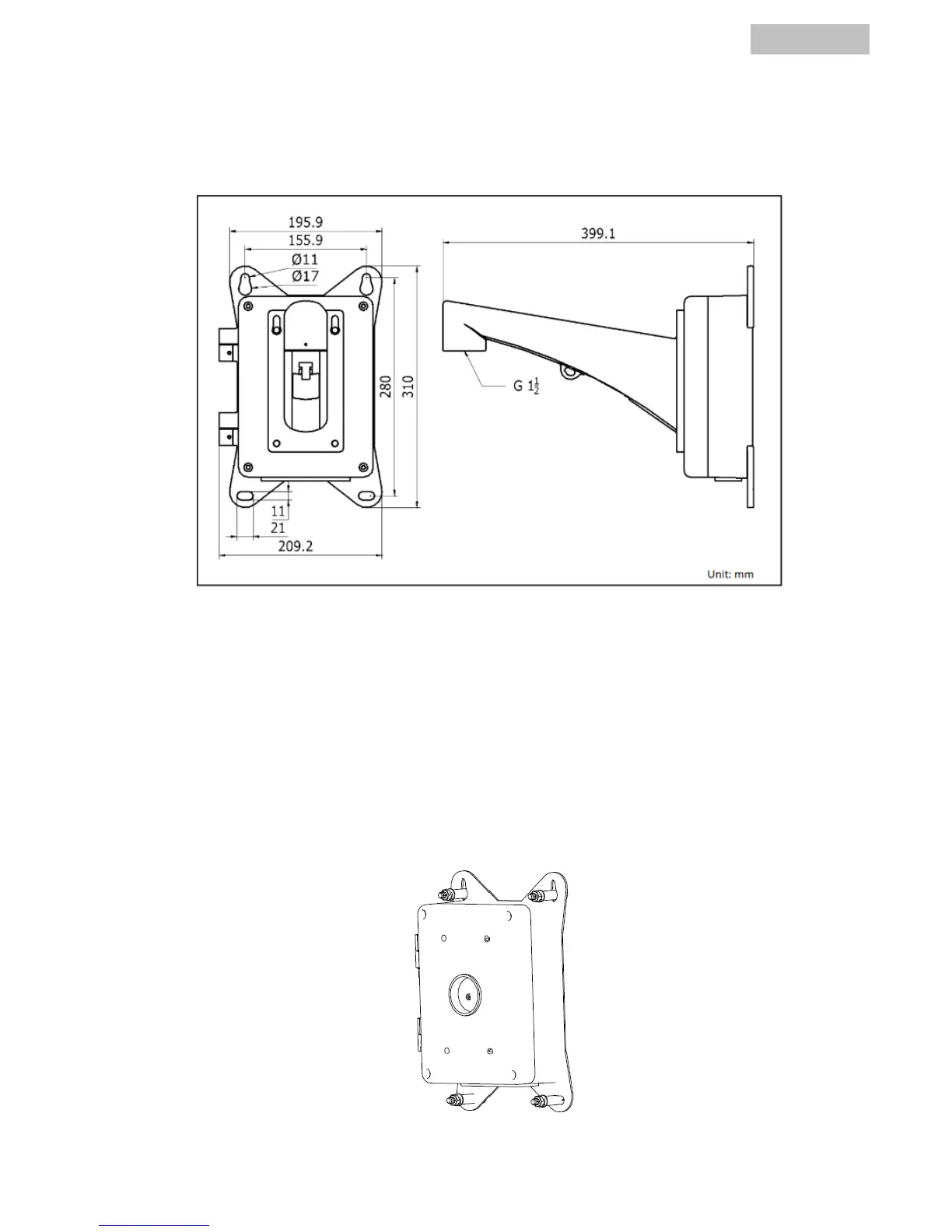 1. Boor vier gaten conform de afmetingen op de afbeelding hierboven.