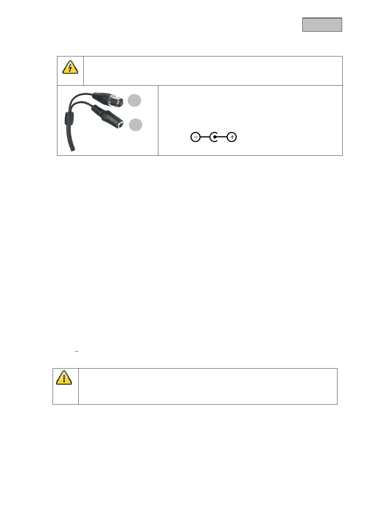 Kamery są przystosowane do 12 V DC. Podłączając zasilanie, zwróć uwagę na biegunowość. Do