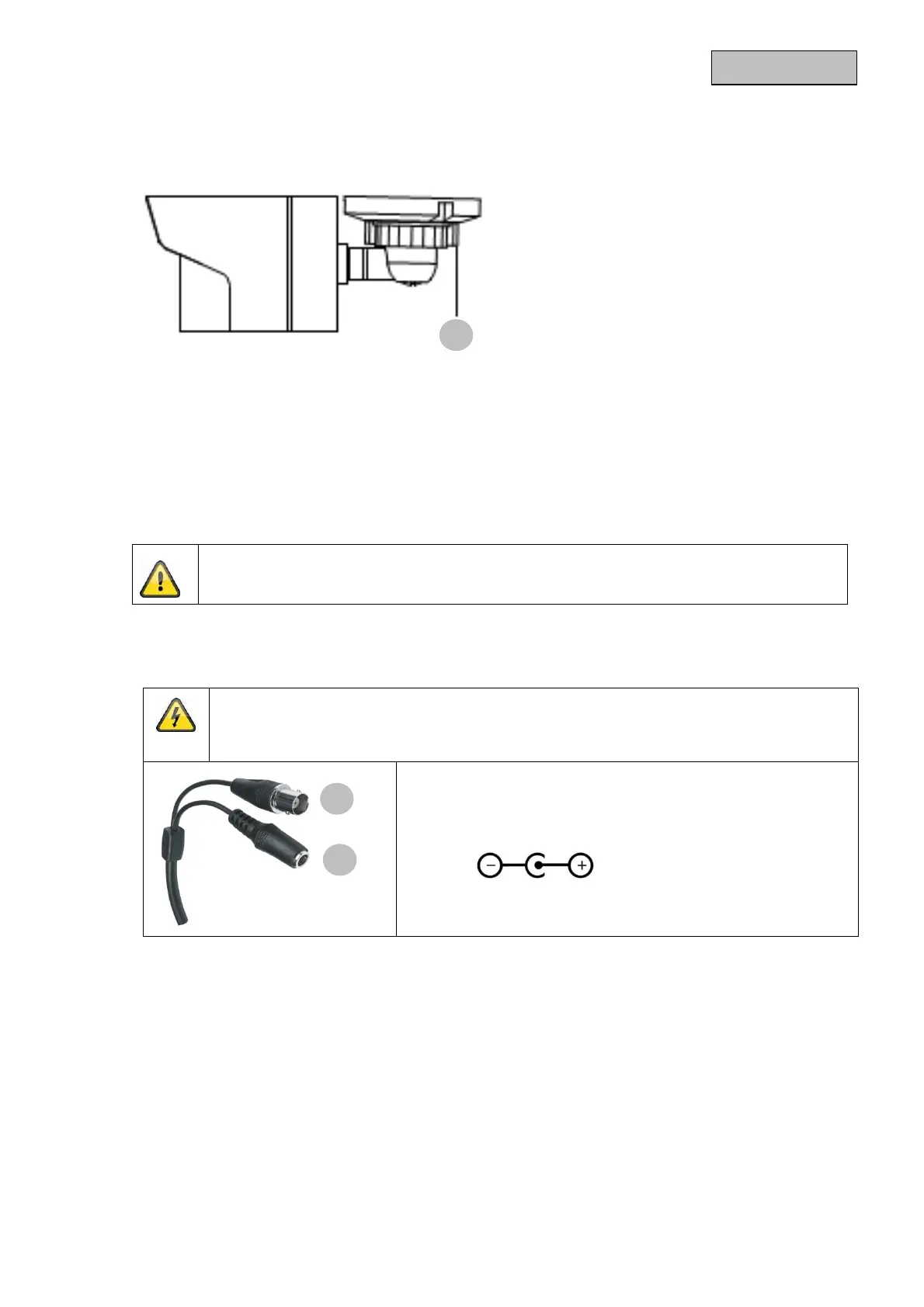 De camera’s beschikken over een voedingsspanning van 12 V DC. Let bij het aansluiten op de polariteit.
