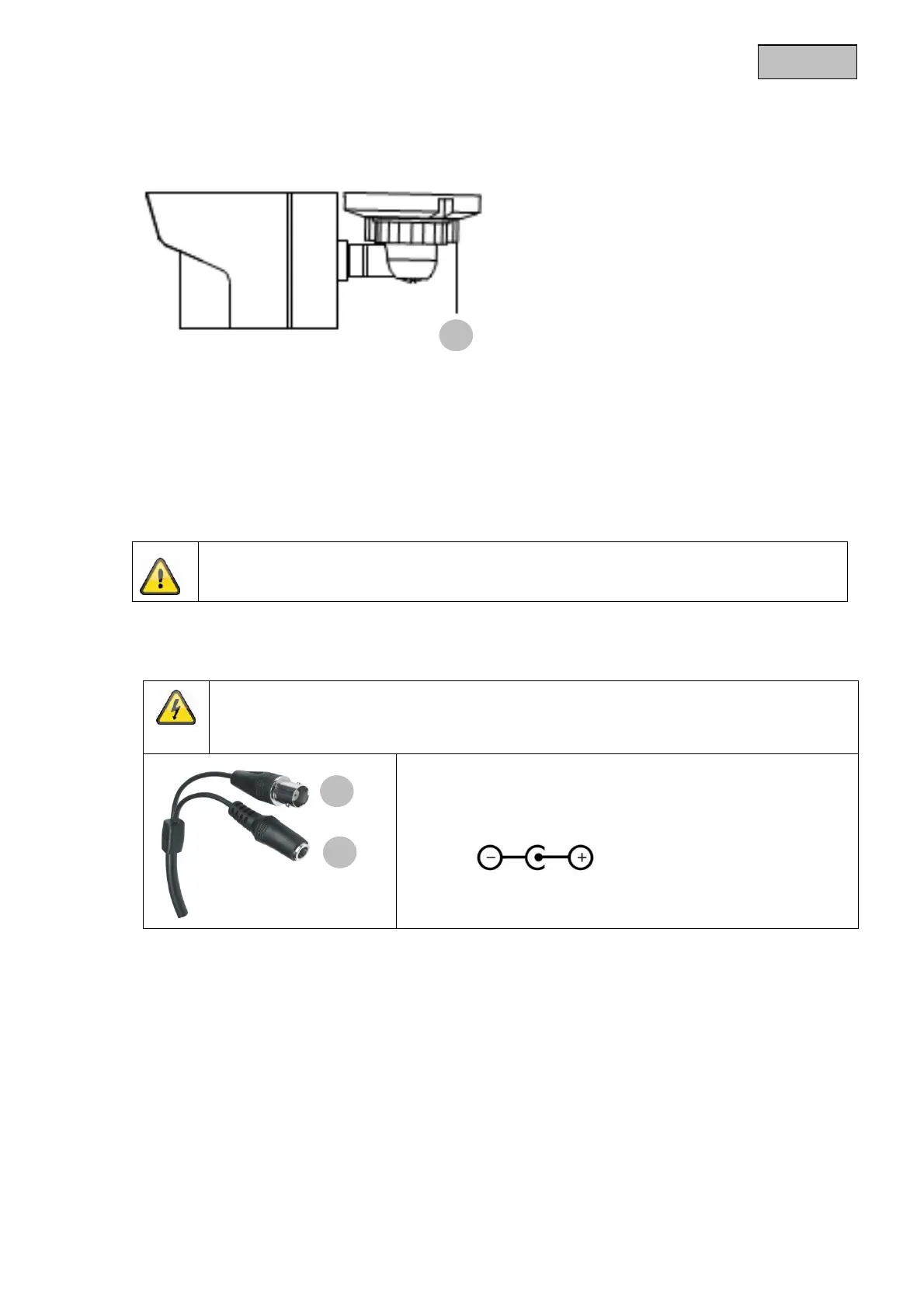 Kamery są przystosowane do 12 V DC. Podłączając zasilanie, zwróć uwagę na biegunowość. Do