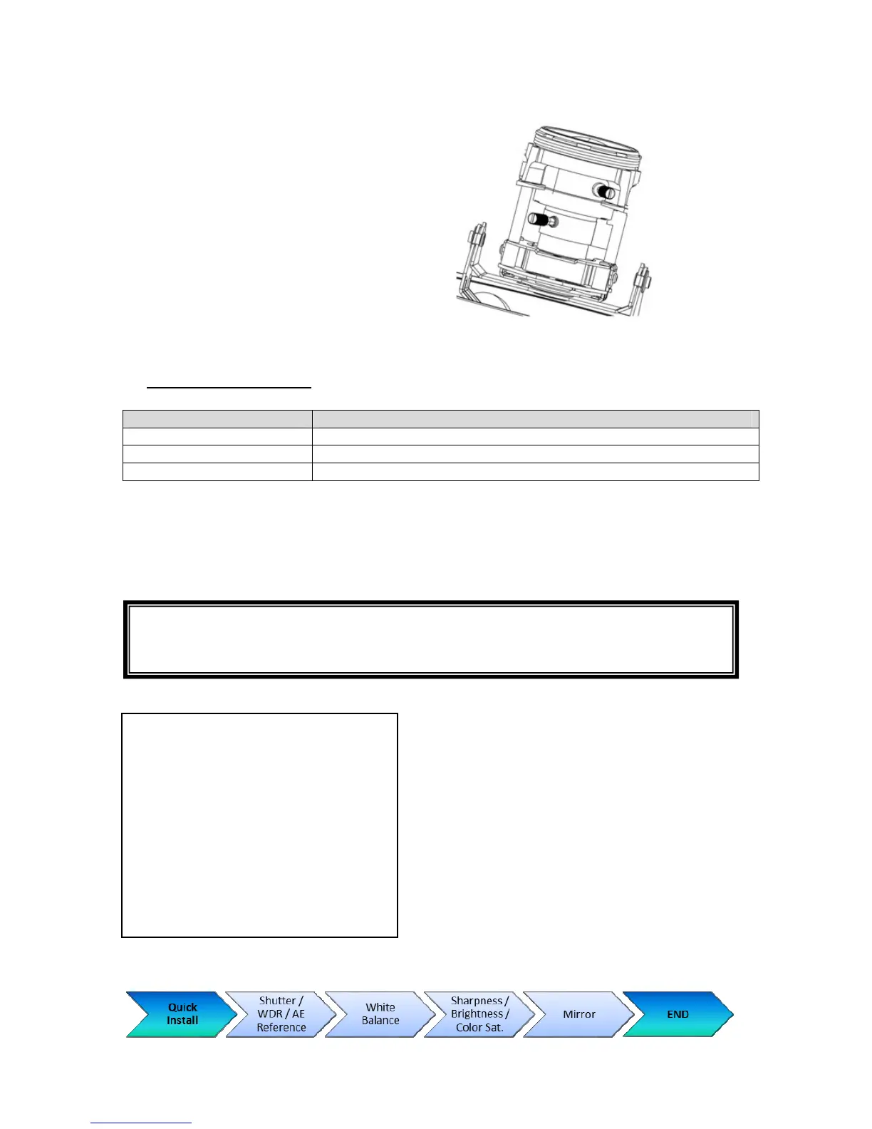 QUICK INSTALL Schnelle Einstellung der wichtigsten Kameraparameter
