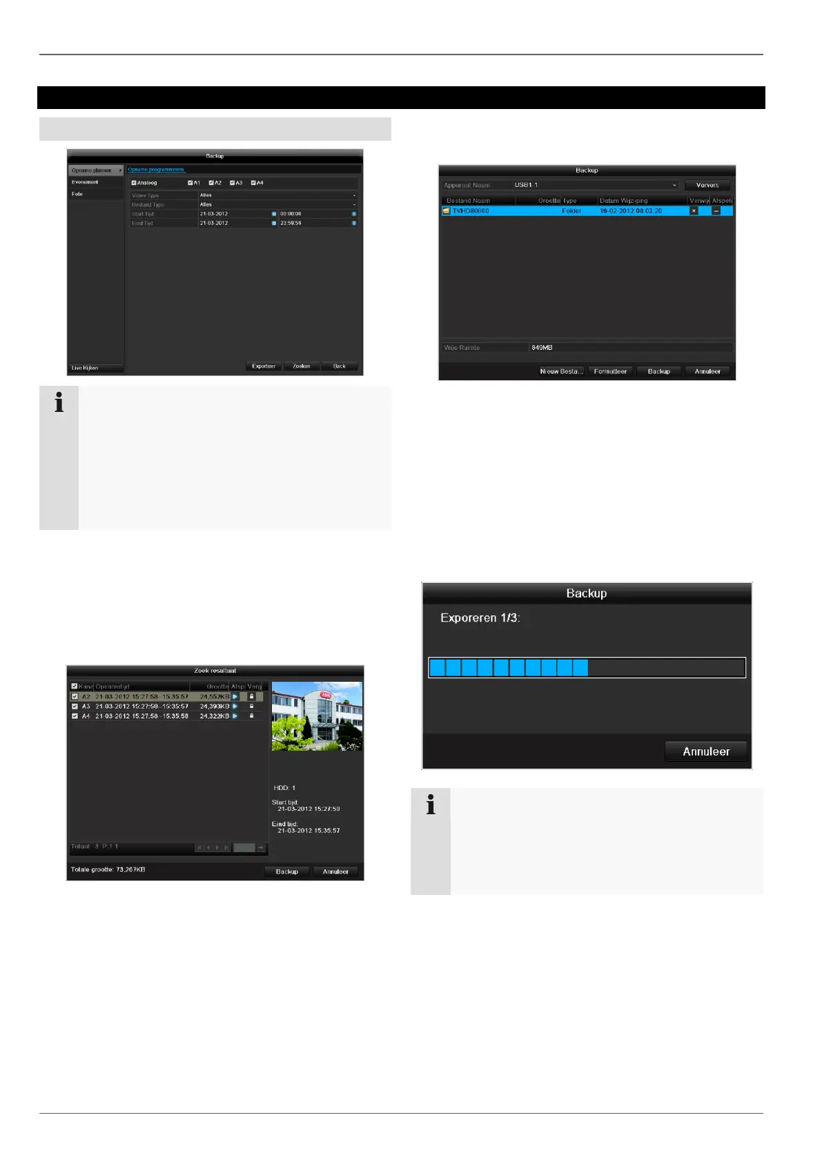 Bij de selectie „Exporteer” worden alle opnames van