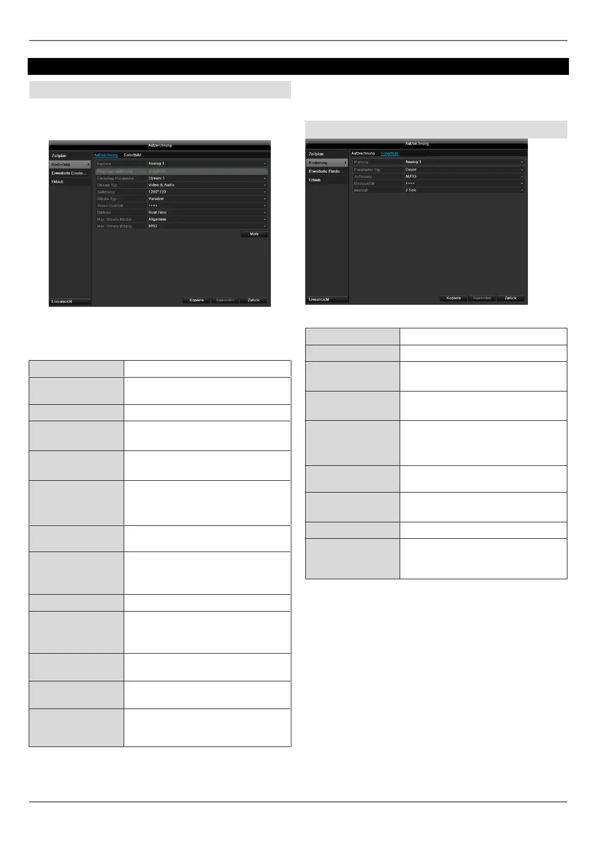 bzw. „Auslöser“ (Aufzeichnungstyp) für die Kameras ein-