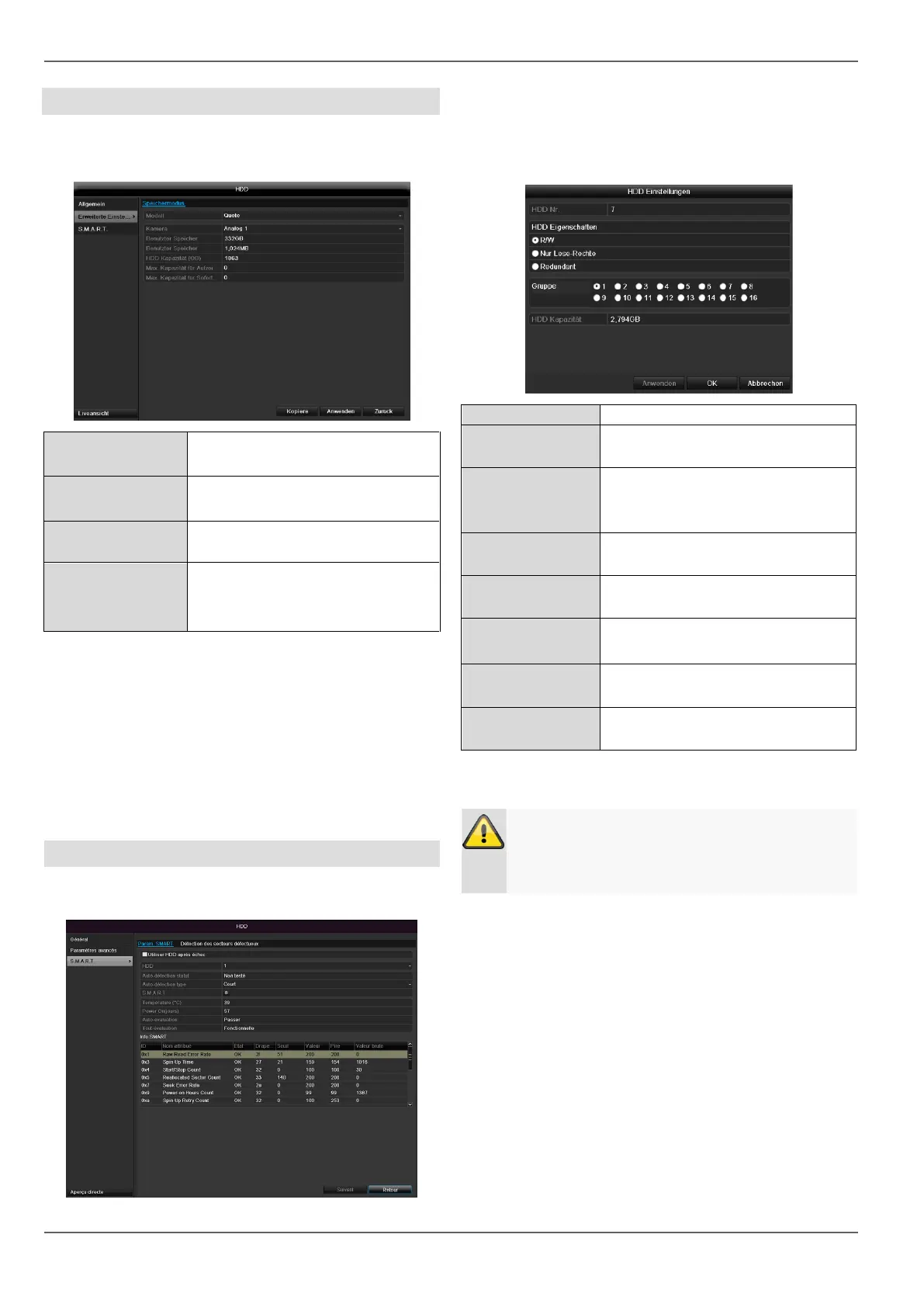 Configuration du disque dur des caméras