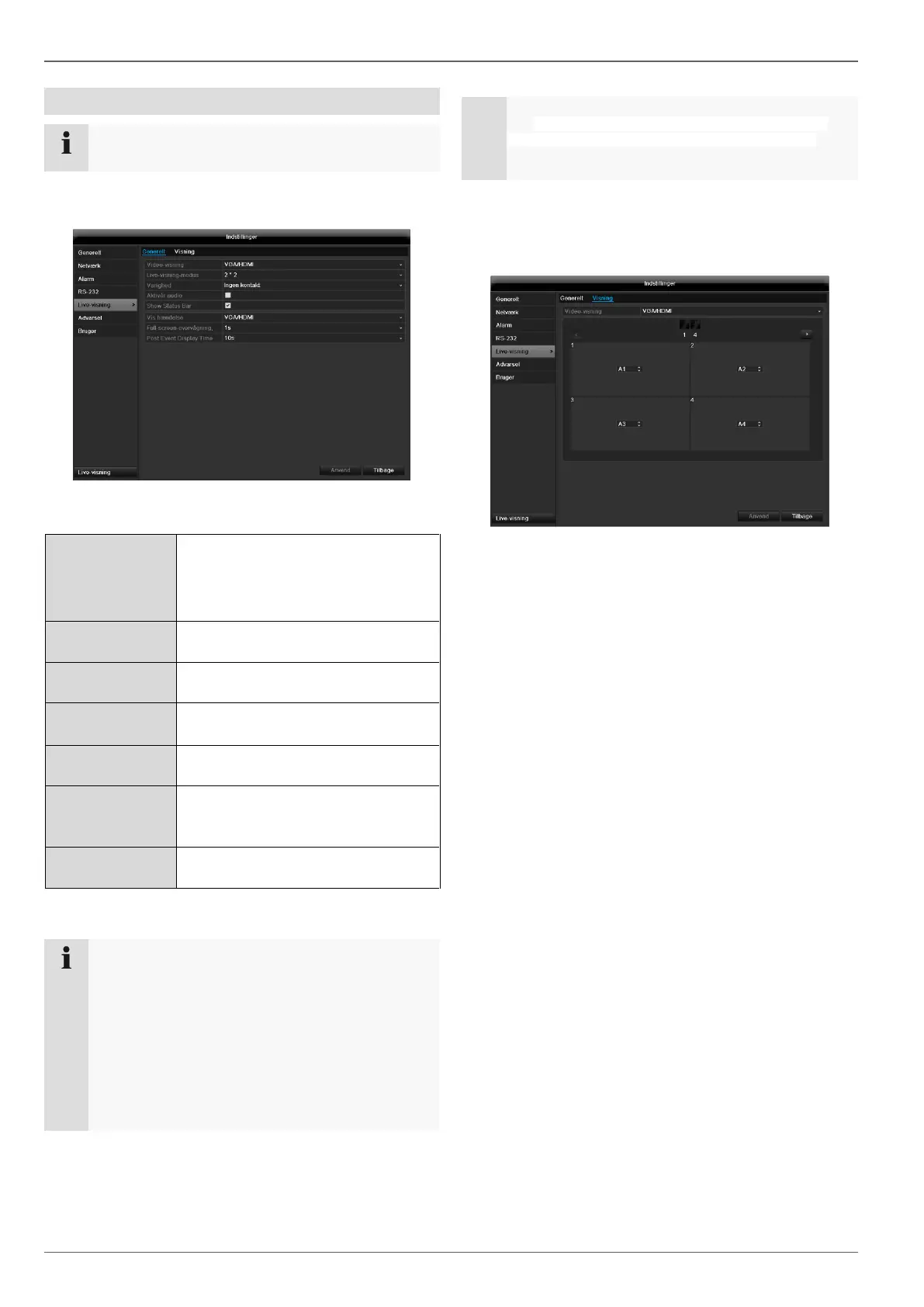 Live-visningen kan indstilles på følgende måde.