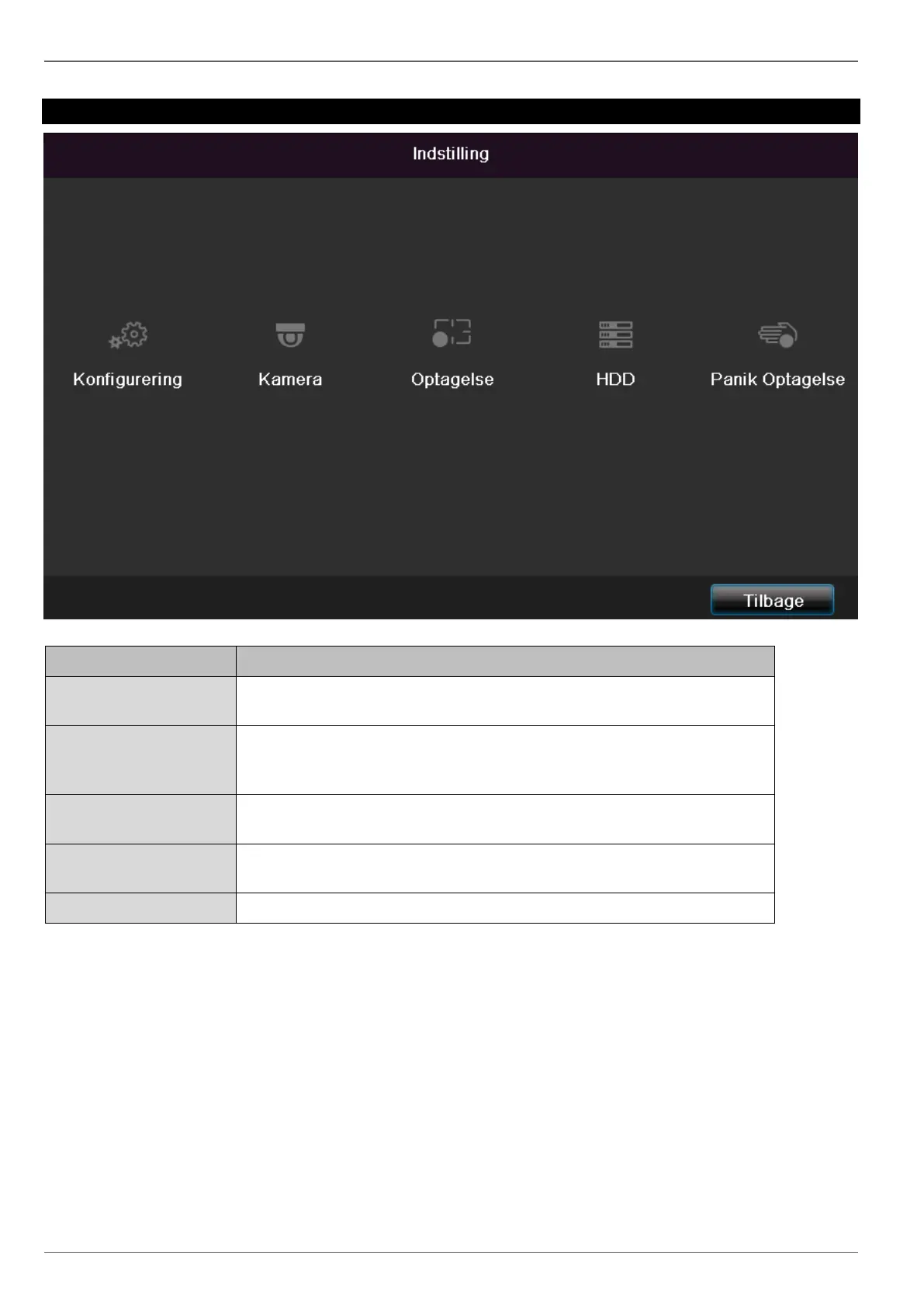 Menu til indstilling af kameraparametre (OSD-konfiguration, billedmodus, ,