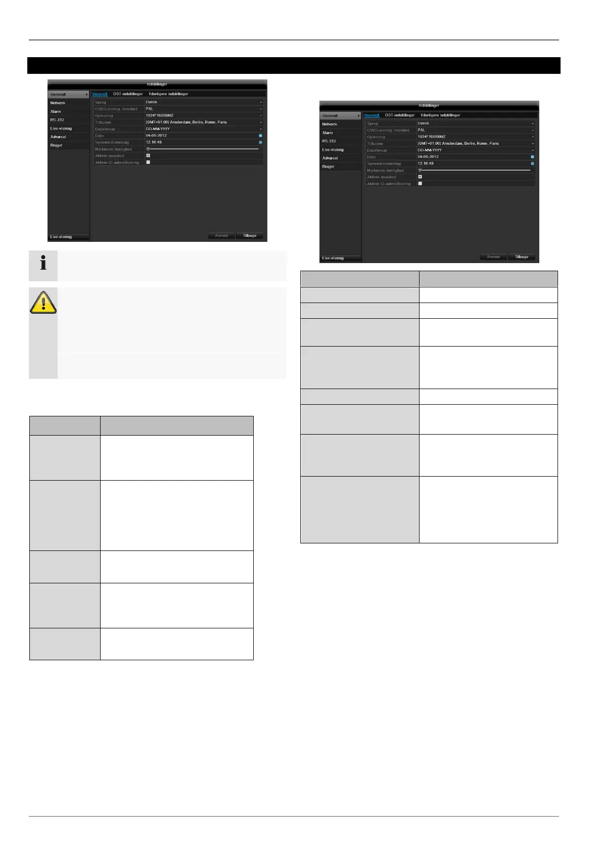 Efterfølgende ændring kan medføre tab af data!