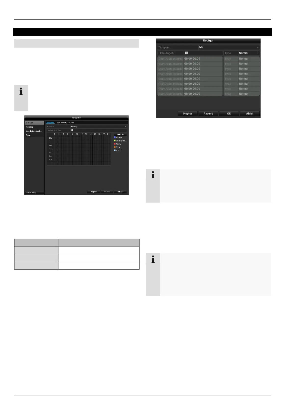 Ved hjælp af tidsplanen indstilles optagelsestiderne eller