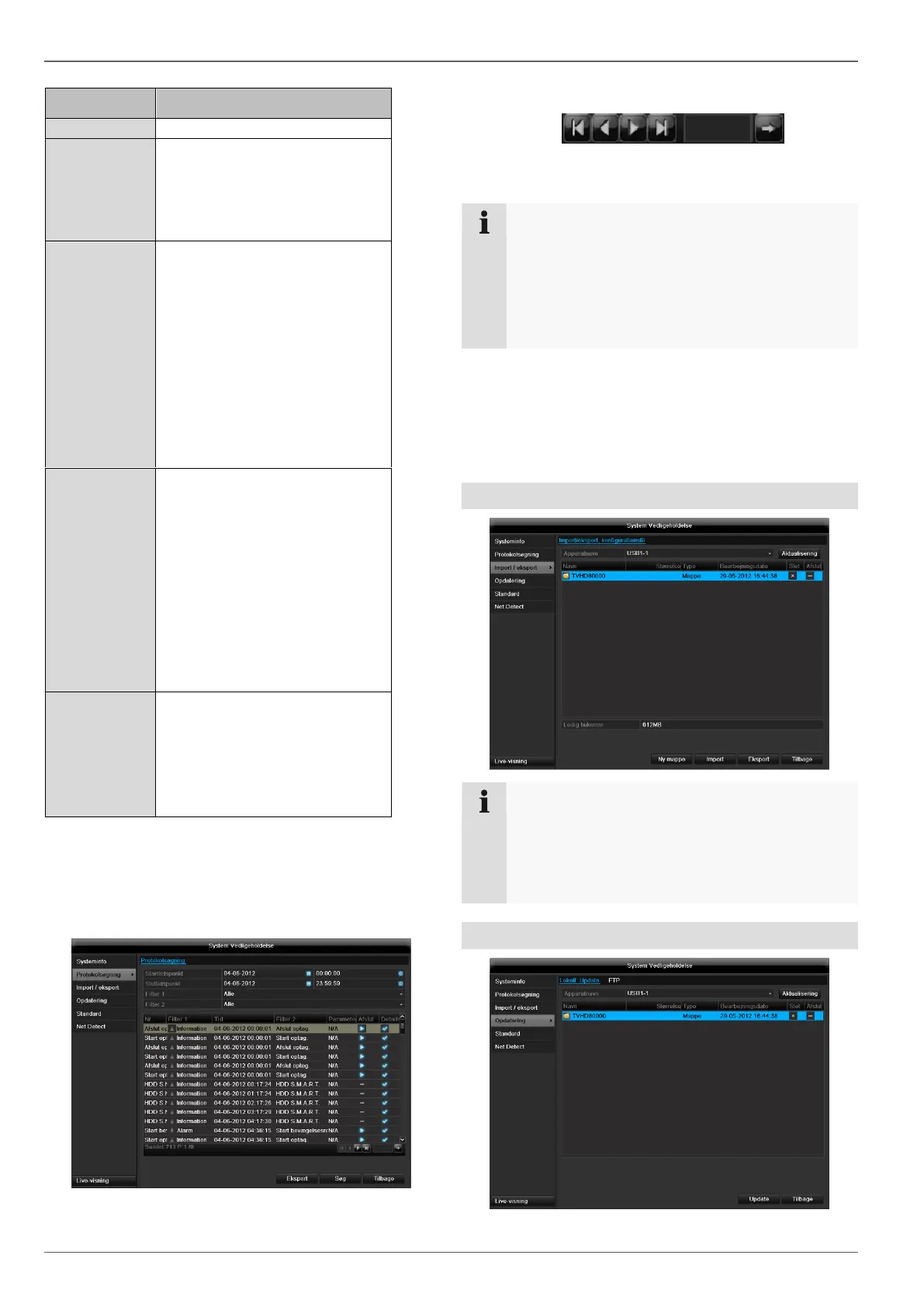 Klik på Eksport for at gemme logfilen på et USB-