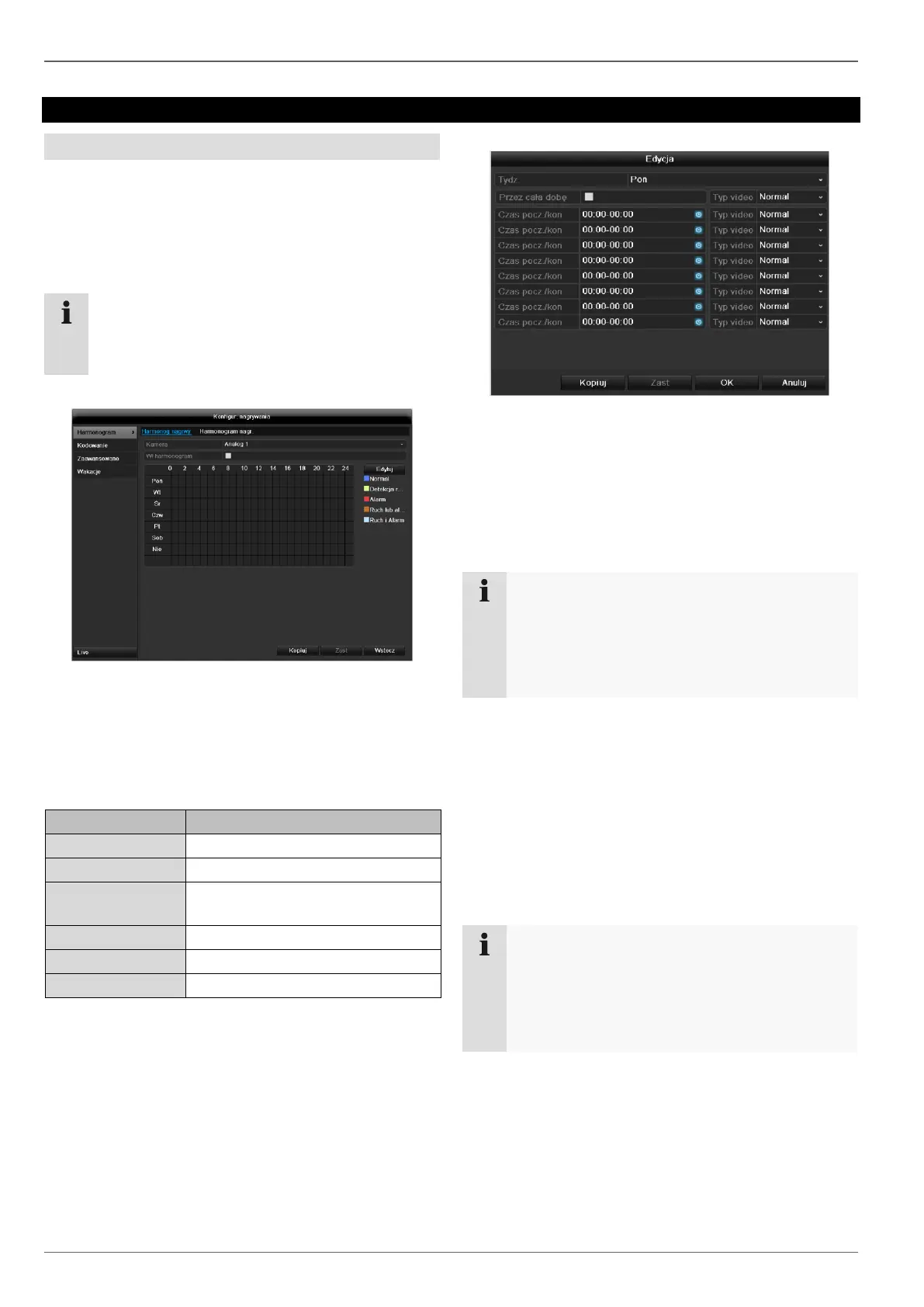 Za pomocą funkcji Harmonogram konfigurowane są