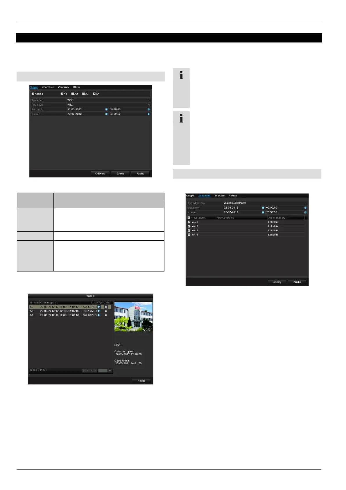 Zapis, aby wyszukać zapisy wideo na podstawie